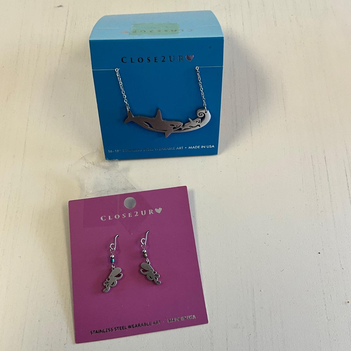 392 Close 2UR Heart Octopus Earrings and Whale Necklace