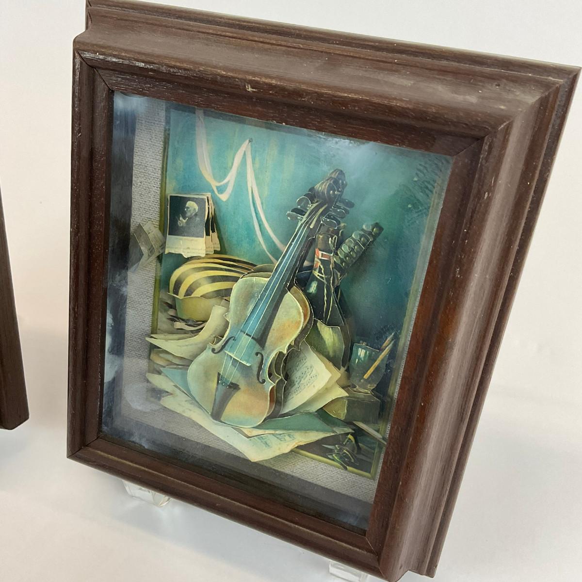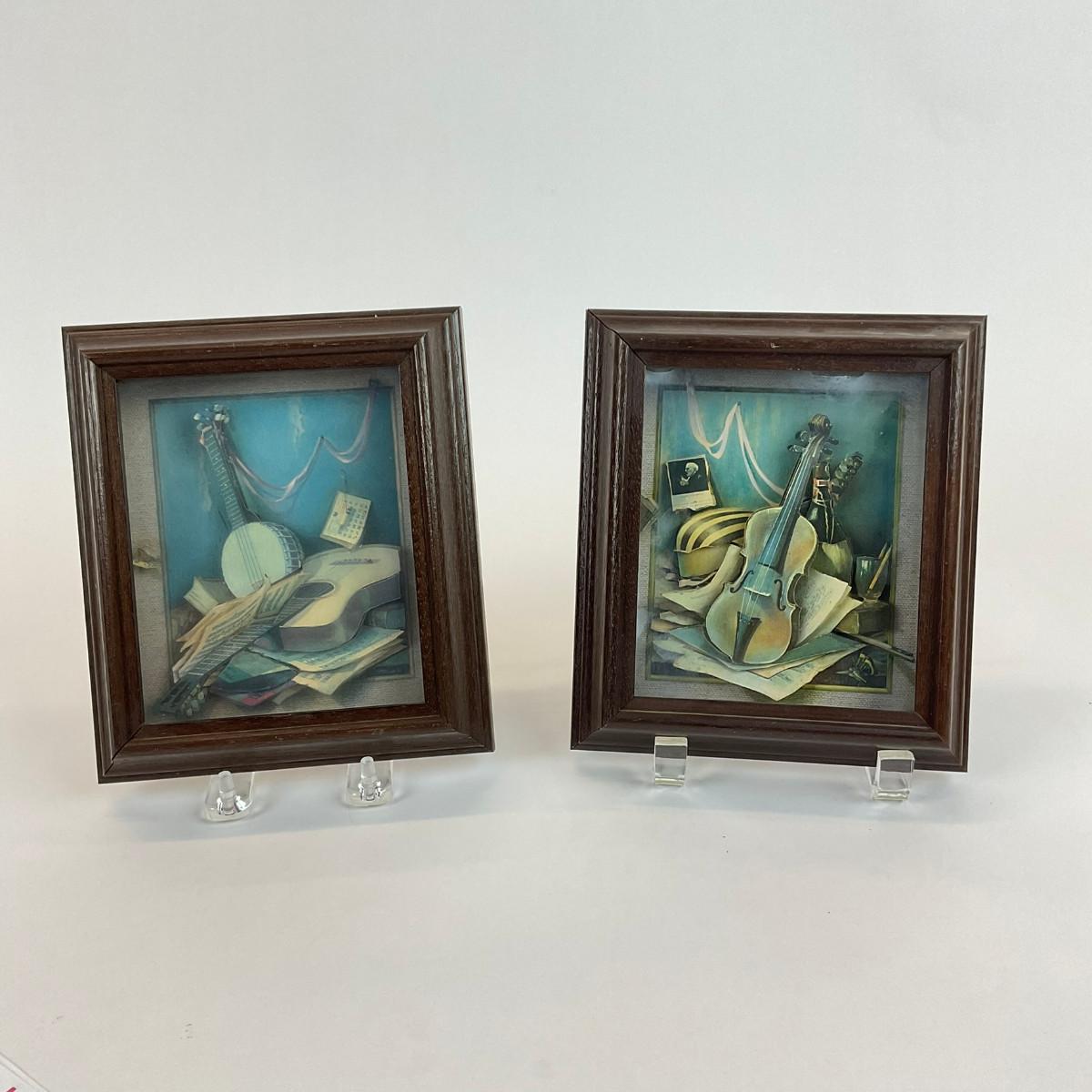 393 Pair Of Framed 3D Paper Mache Musical Art