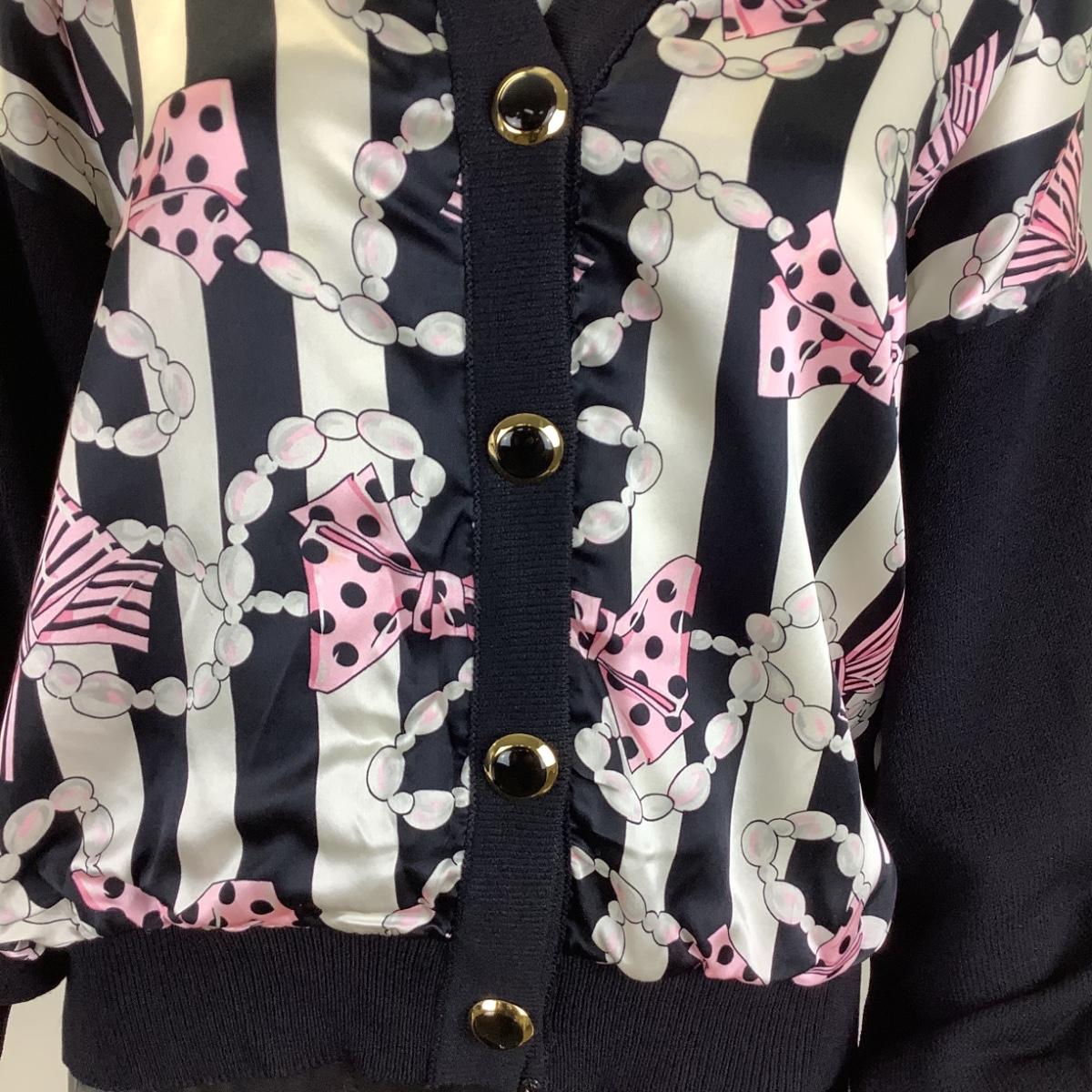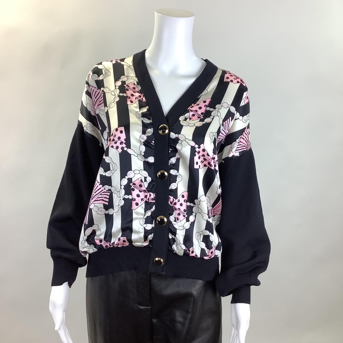 392 ST. JOHN Bow & Pearl Print Cardigan Sweater Size M