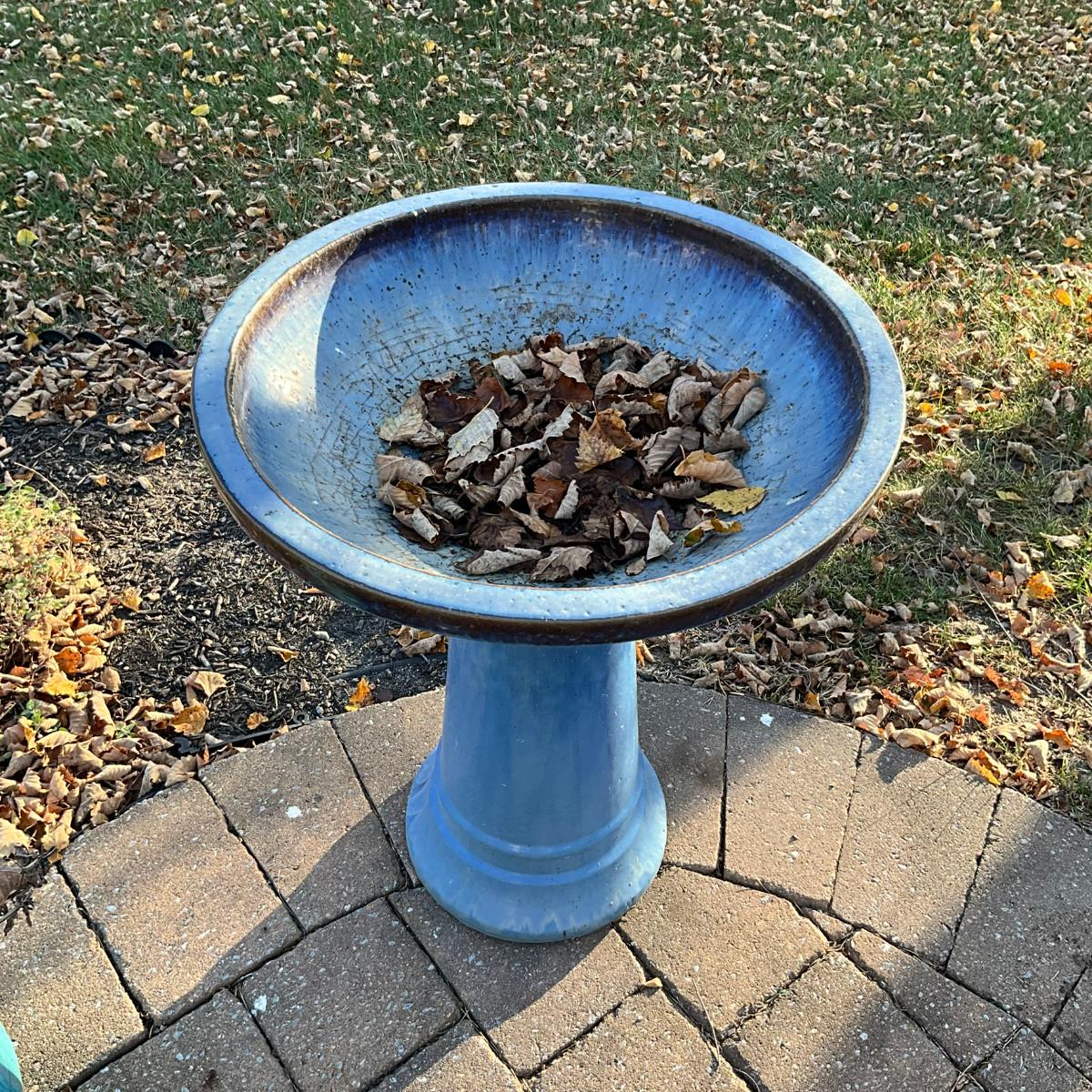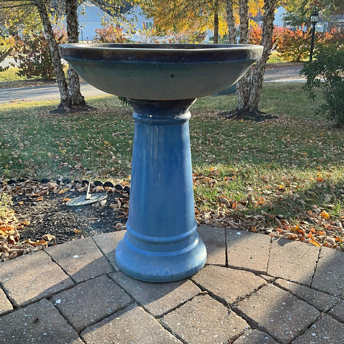 394 Blue Terracotta Glazed Bird Bath