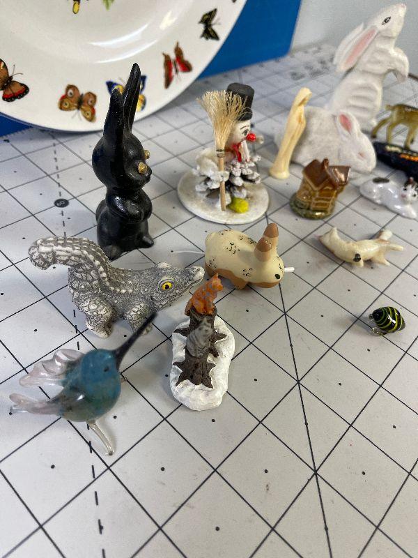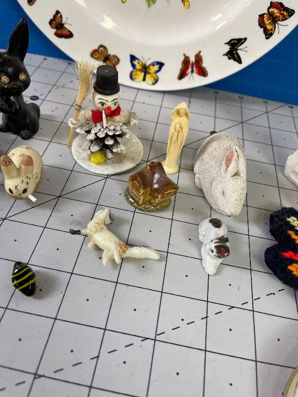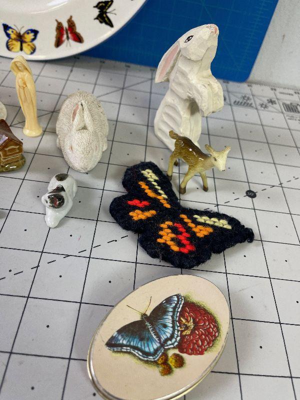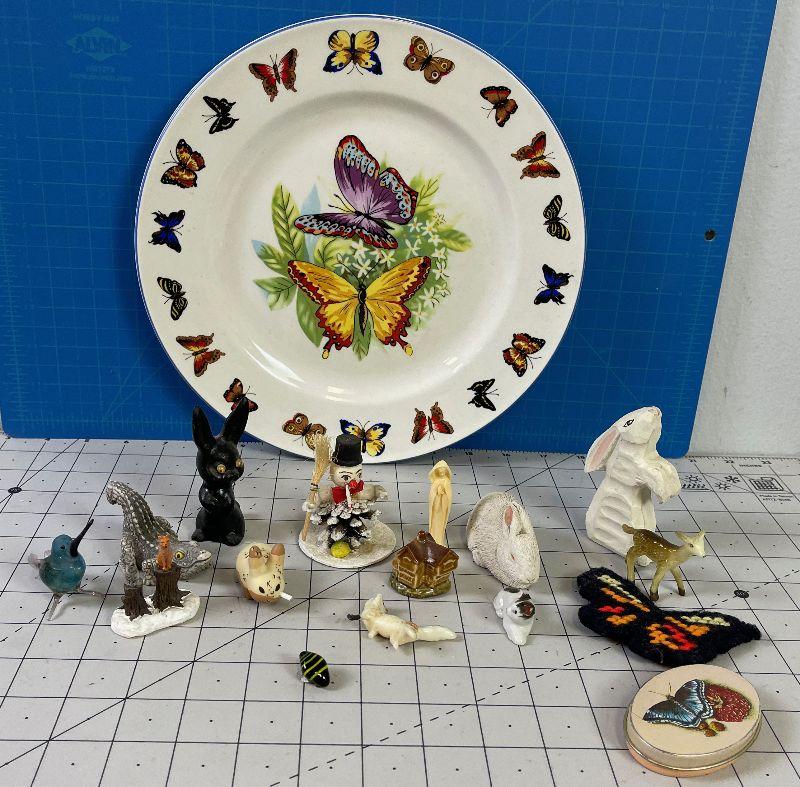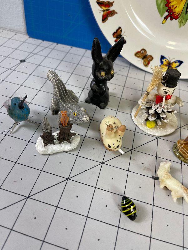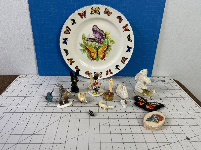 #395 Butterfly Platter With Several Miniatures: Rabbits, Cats, Alligator