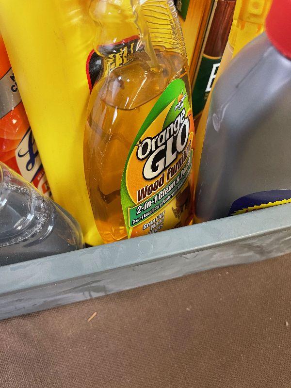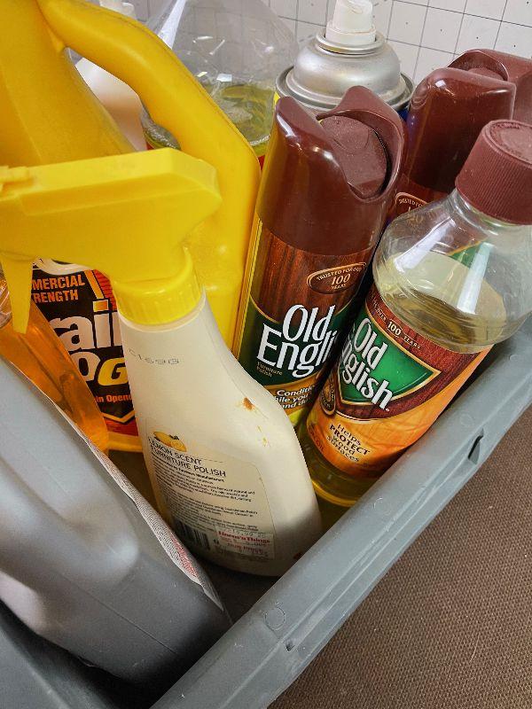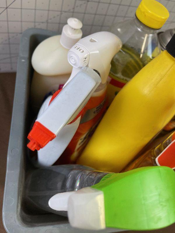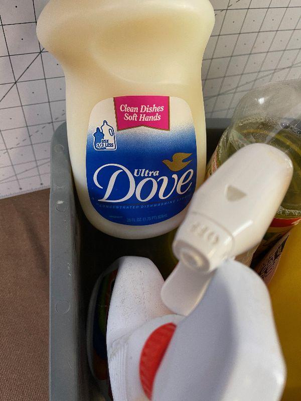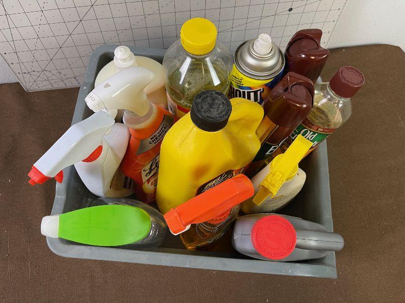 #396 Box of Household Cleaners: Soaps, dusting etc.