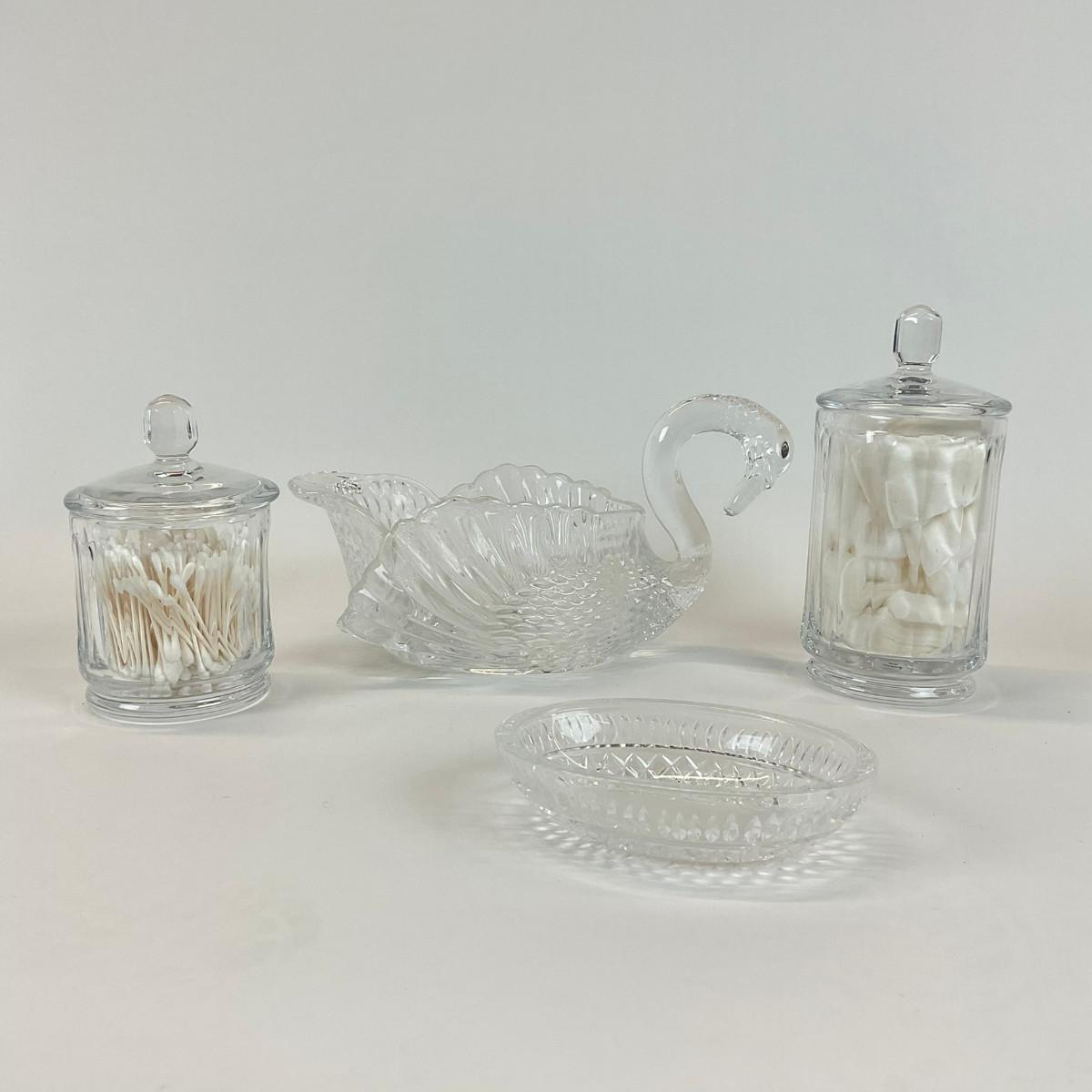 397 Shannon Crystal Hand-Craft Swan Bowl With Waterworks Q-Tip & Cotton Ball Containers