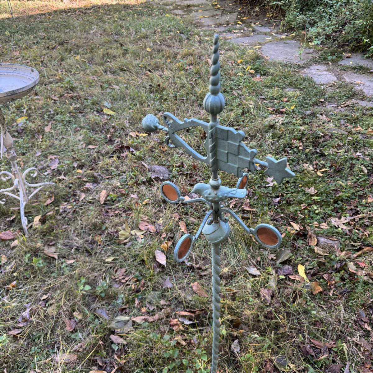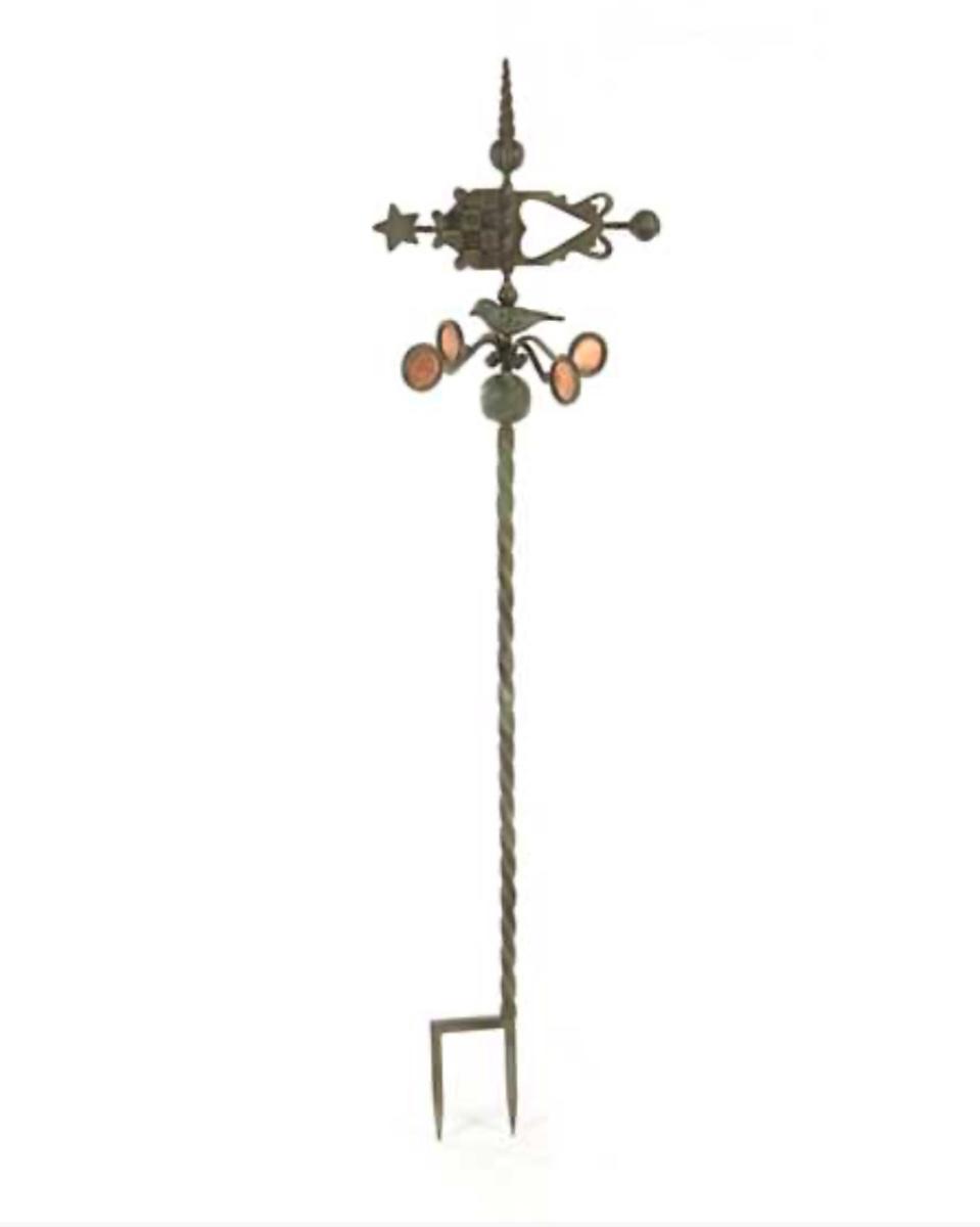 Put a twist on front yard decor with our Wind Spinner Garden Stake. Crafted of iron with a verdigris patina and copper accents, this charming kinetic sculpture blows a bit of MacKenzie-Childs whimsy into blustery days. An inspired gift for a green-thumbed friend’s hilltop wildflower patch or beach cottage backyard.