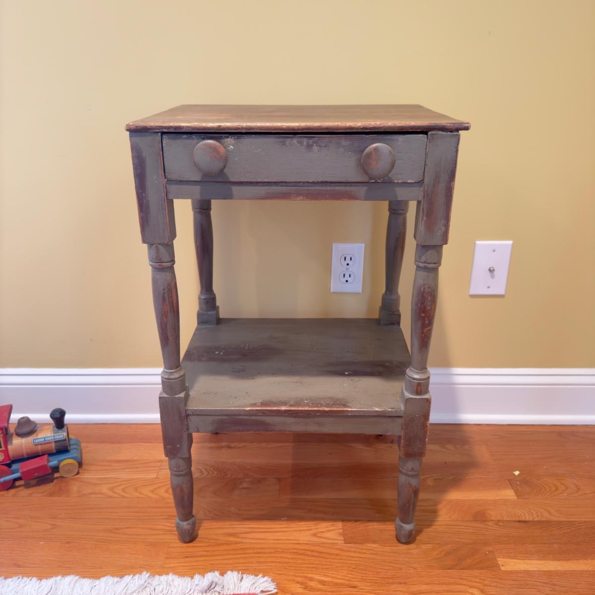 398 Vintage Primitive Style Single Drawer Stand