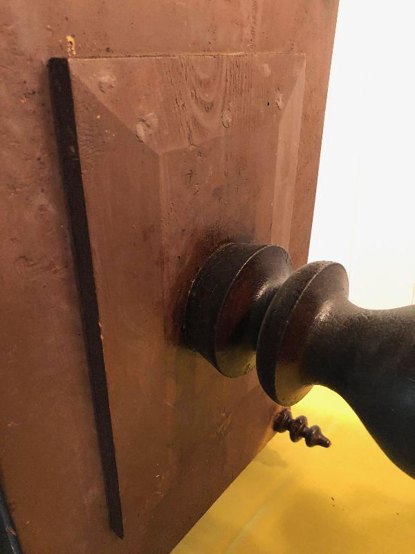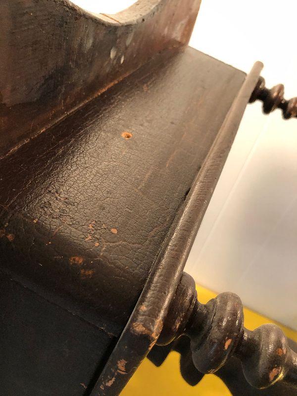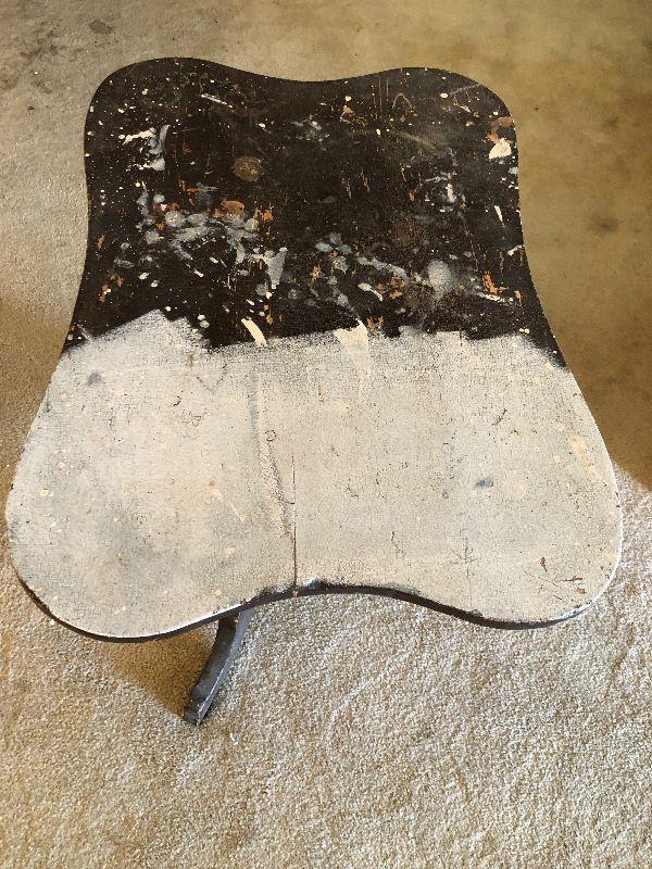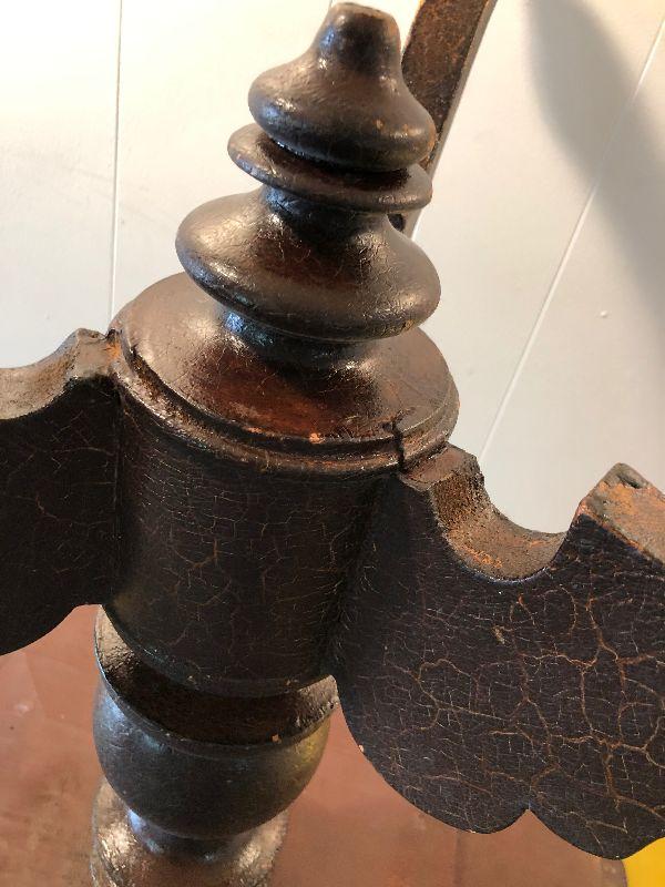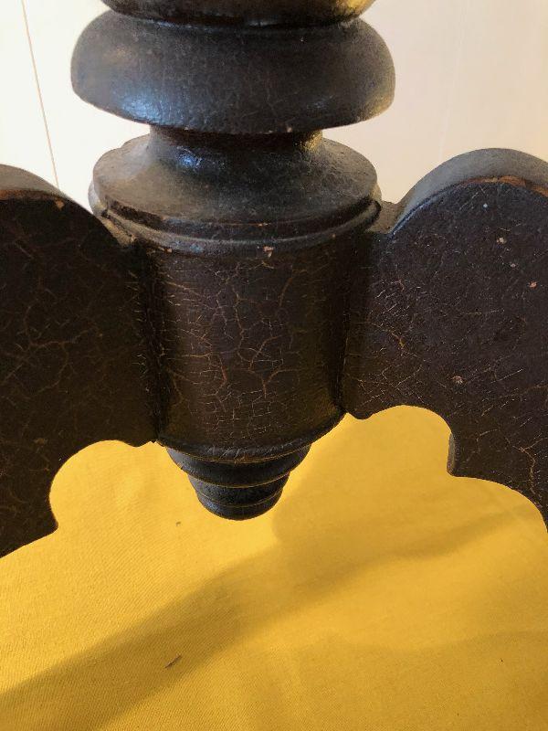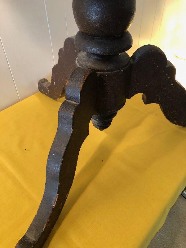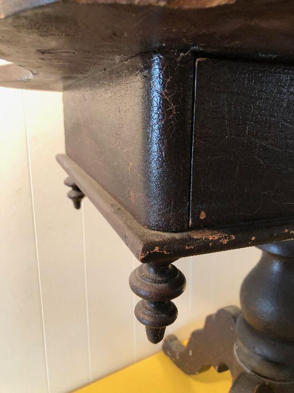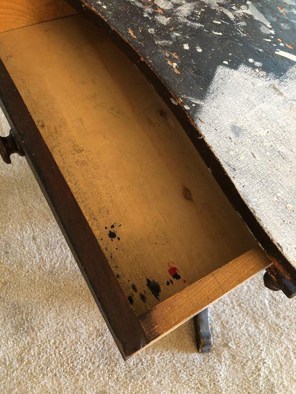 Circa 1860 San Pete County Utah. 30 x 21 x 27 tall: 3 legs, hand made, scalloped top, drawer. AWESOME Crackle finish on the base!