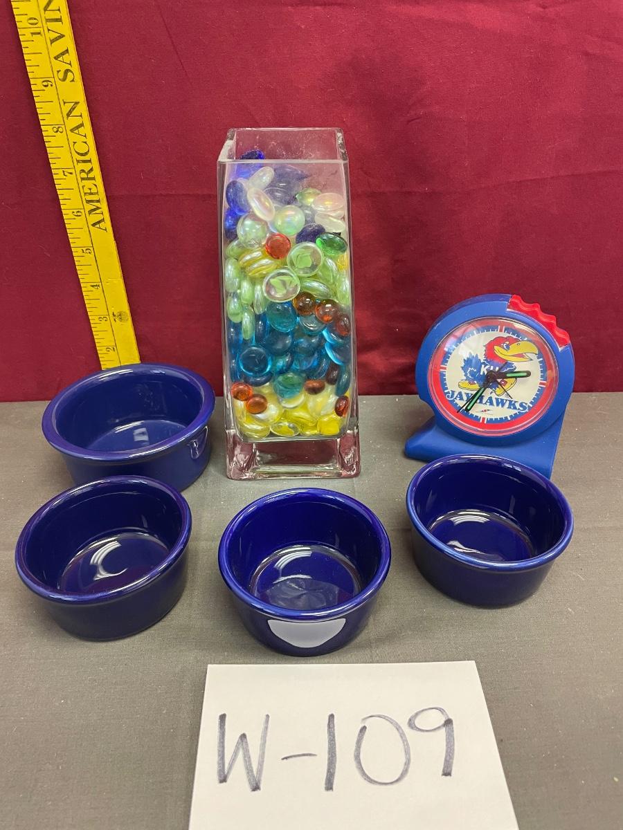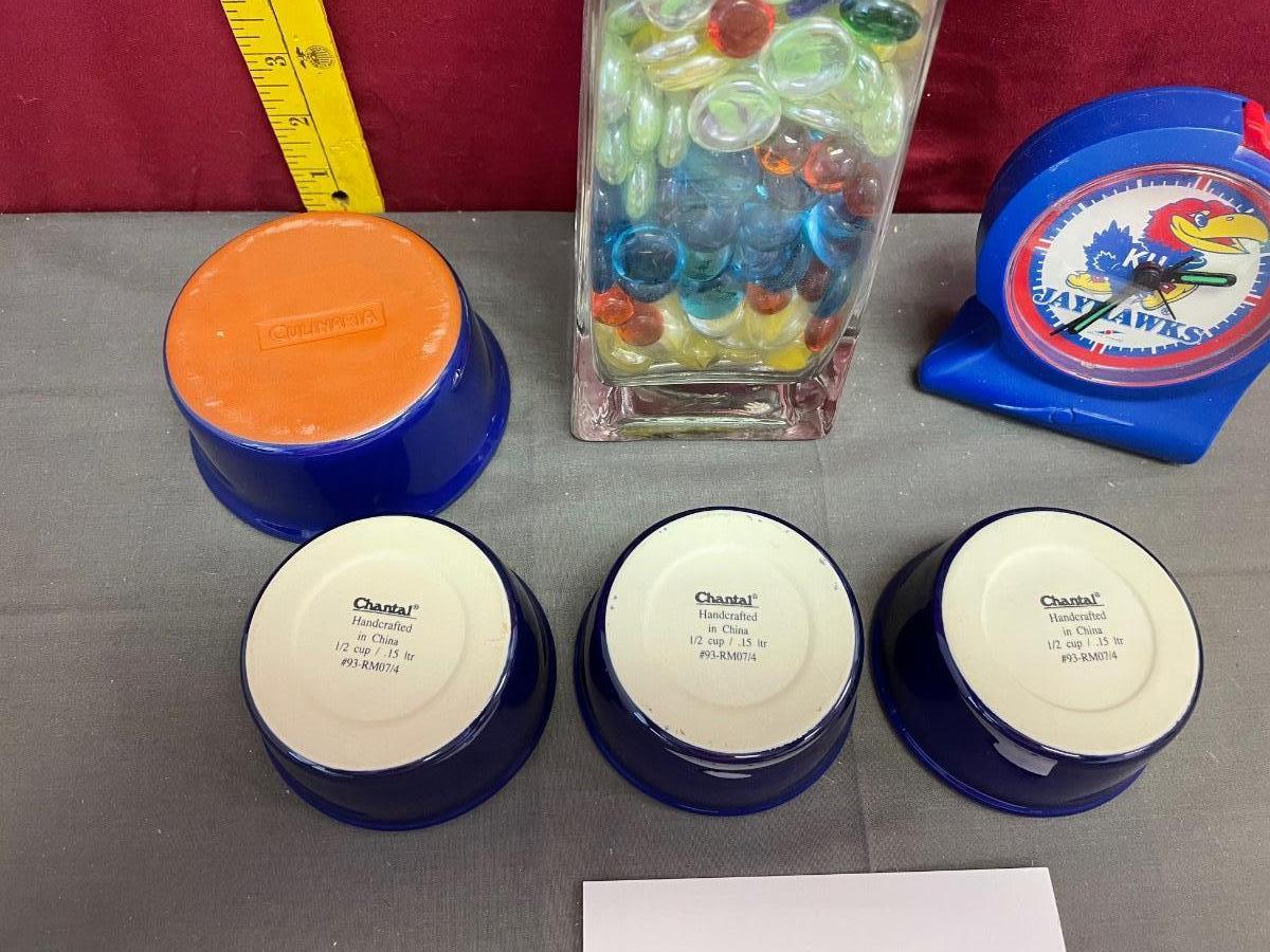 3 Chantal 1/2 cup, culinarily bowl, vase, KU clock
