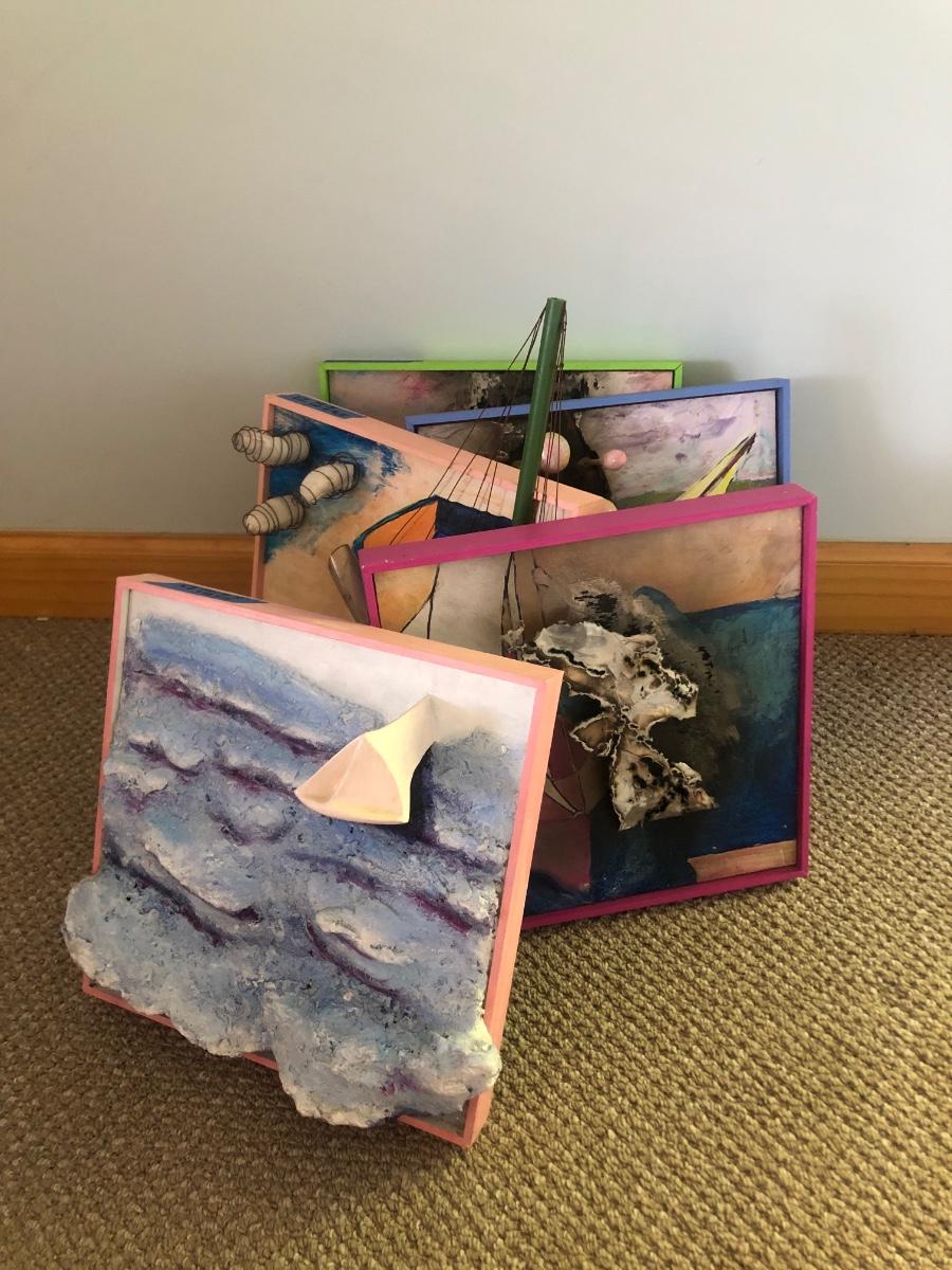Local artist Reginald “Ripp” Smith created these five unique 3D ocean-themed mixed media artworks.