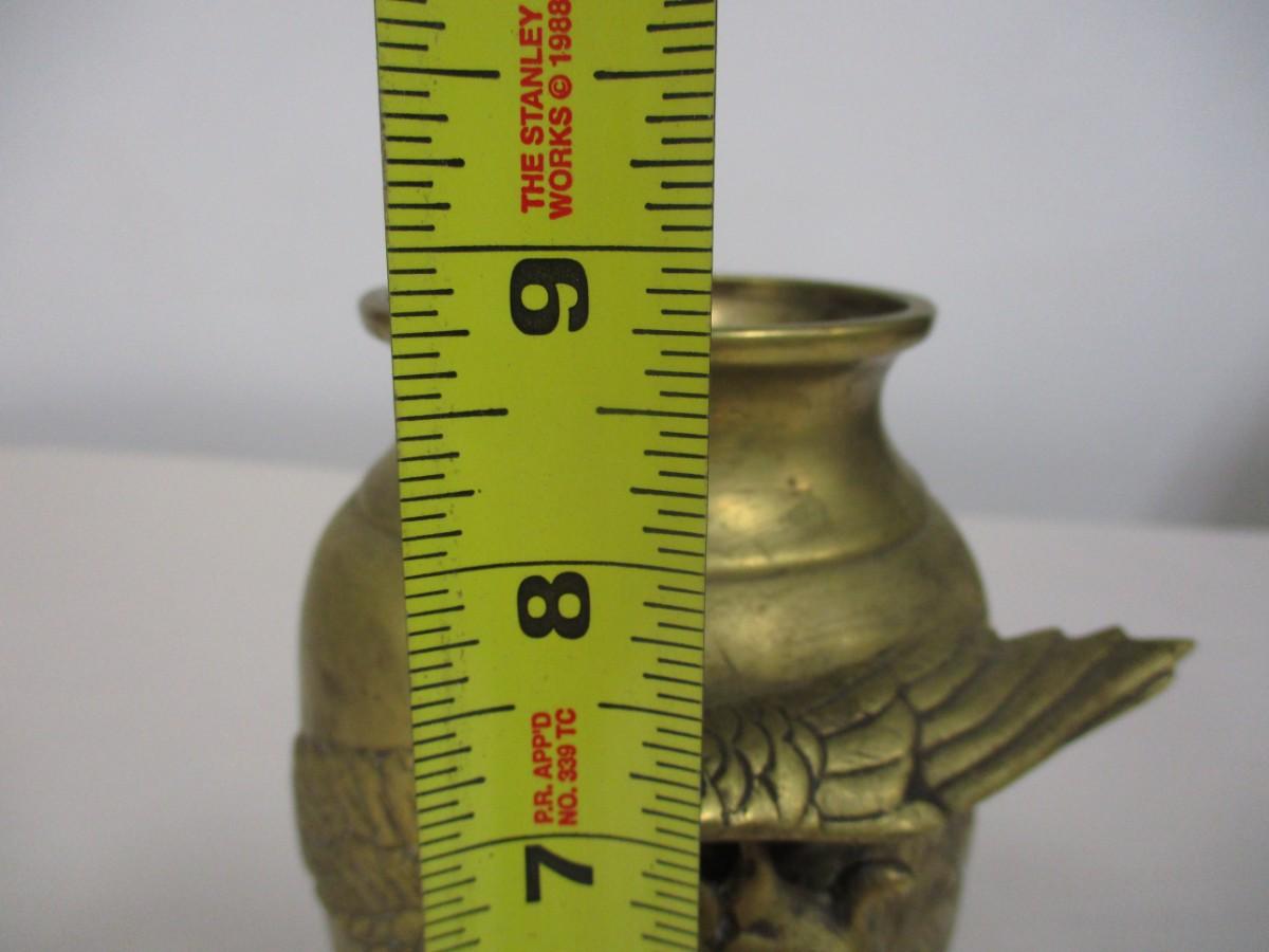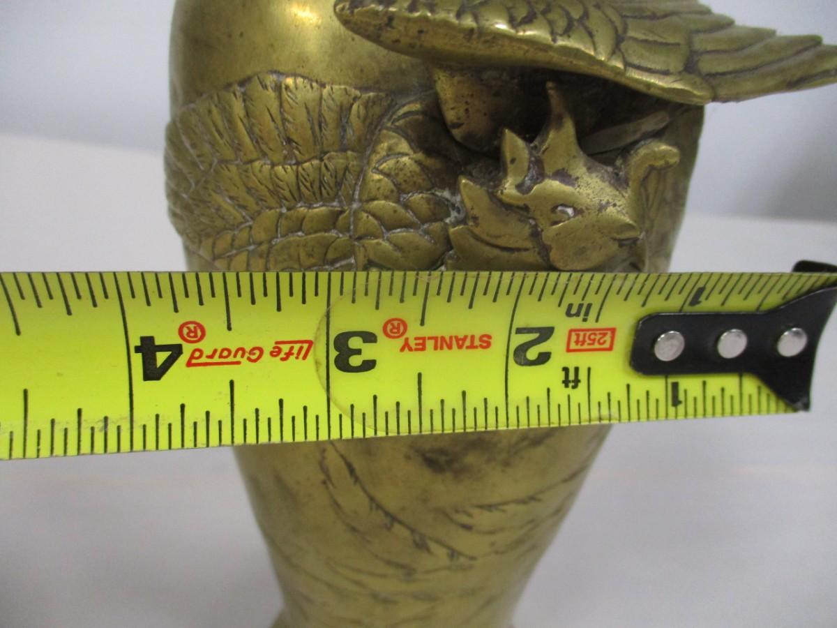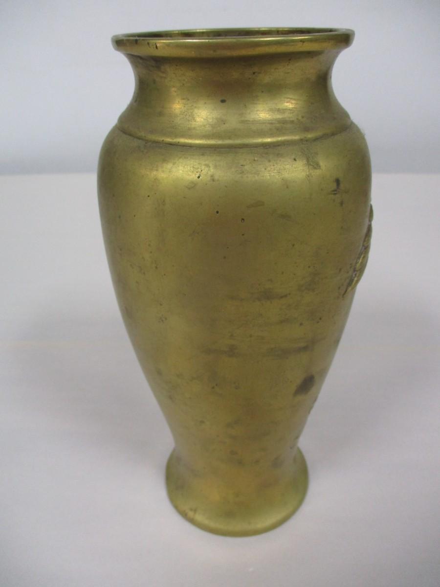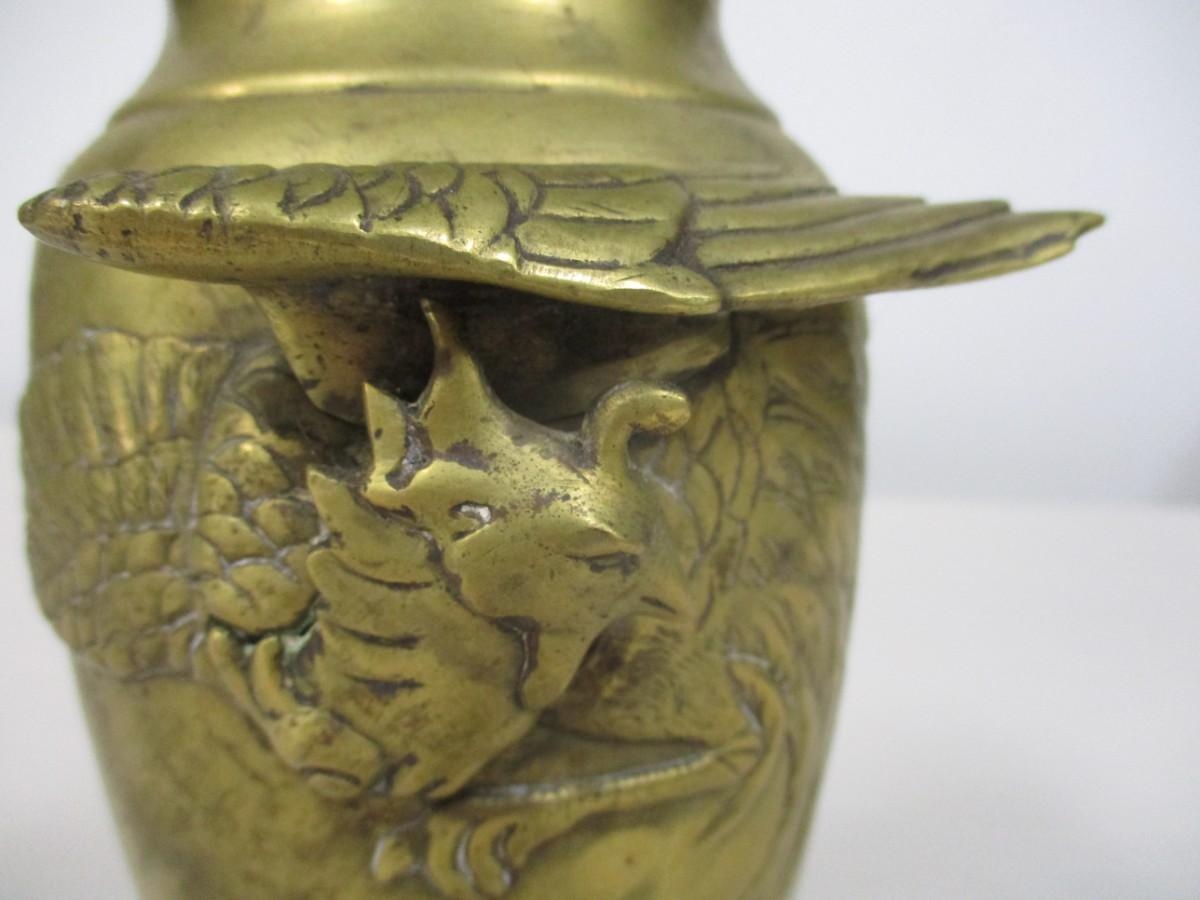 Antique Three-Dimensional Brass Vase with Japanese Fighting Rooster