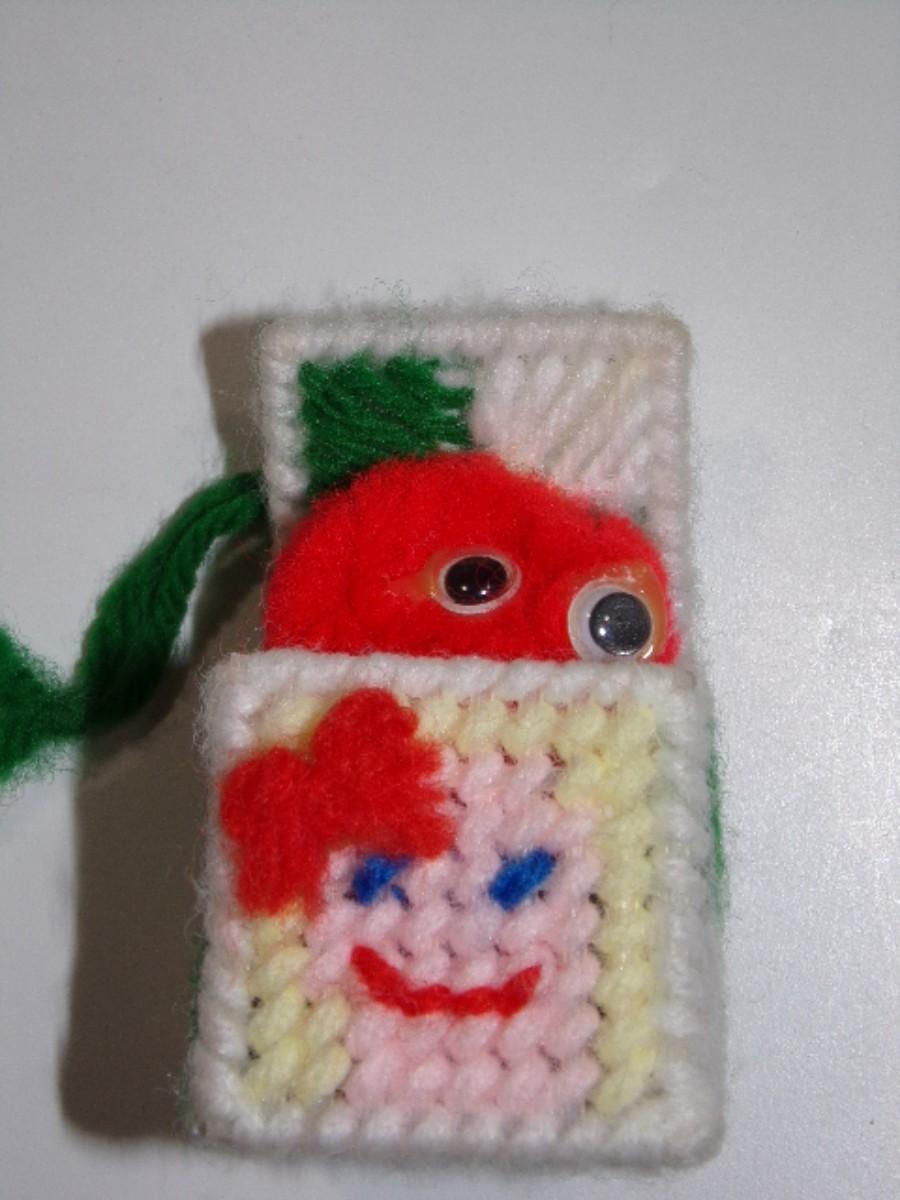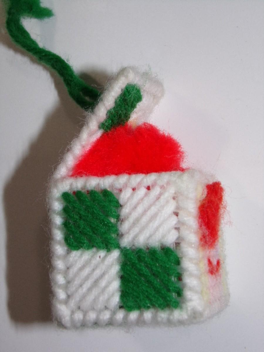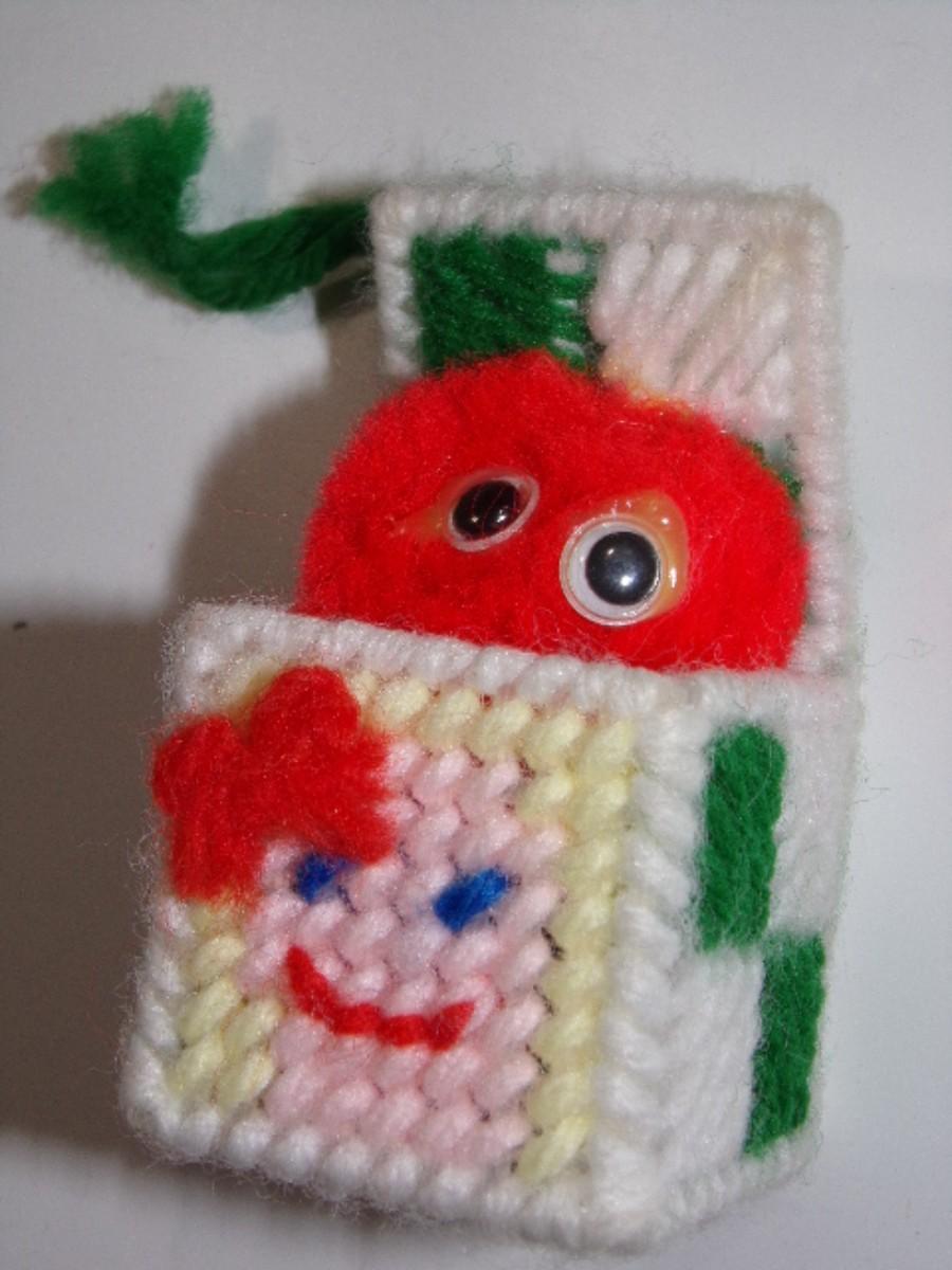 Hand crafted needlepoint 3-D jack-in-the-box tree ornament