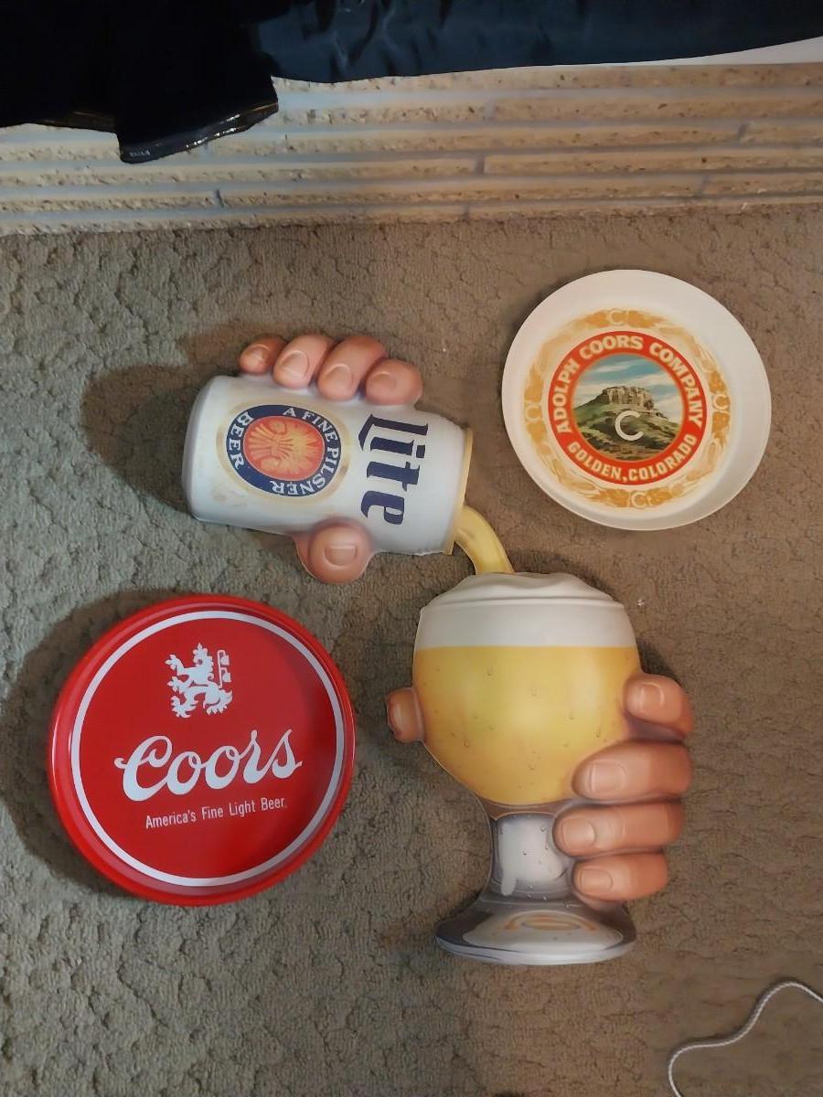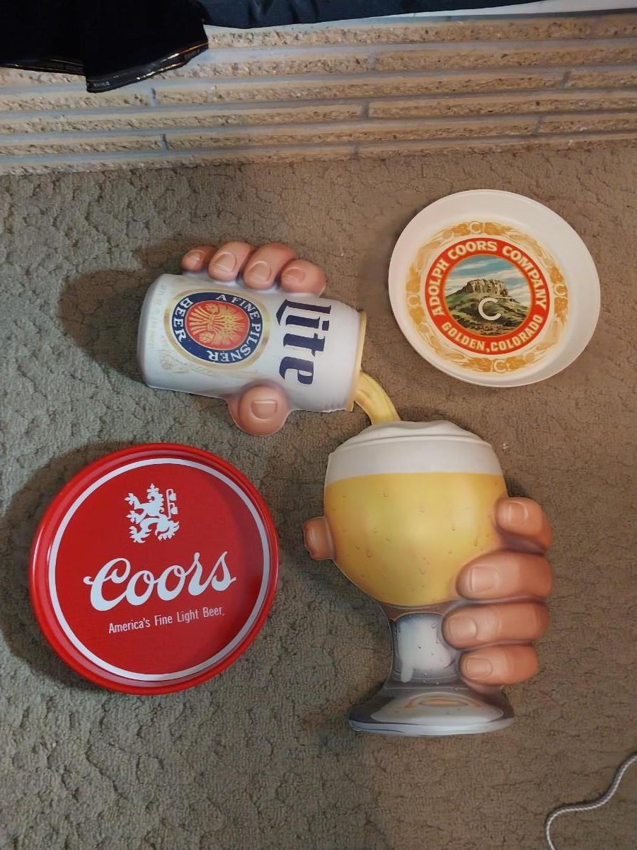 3D PLASTIC HAND POURING A BEER & 2 SERVING TRAYS