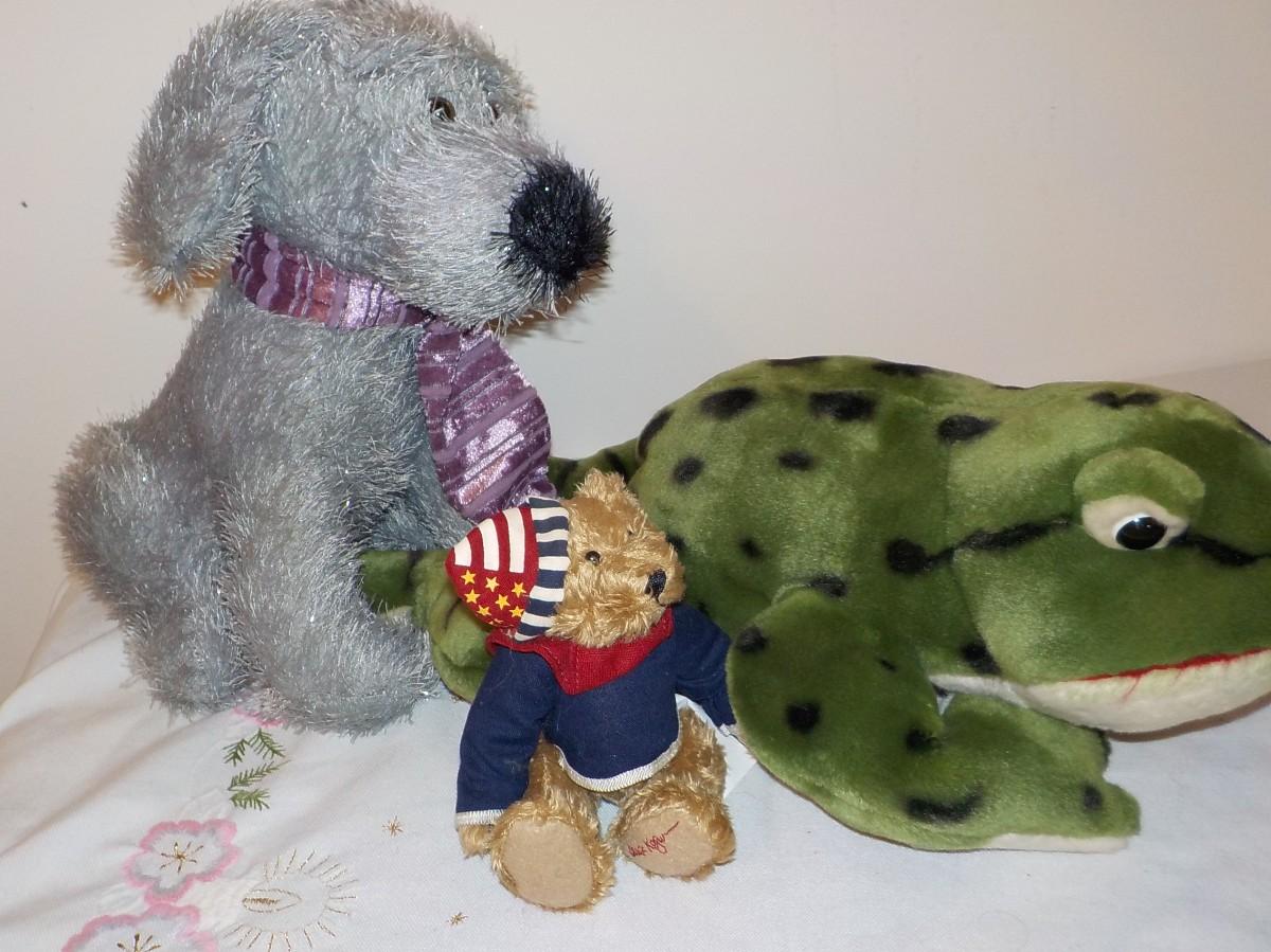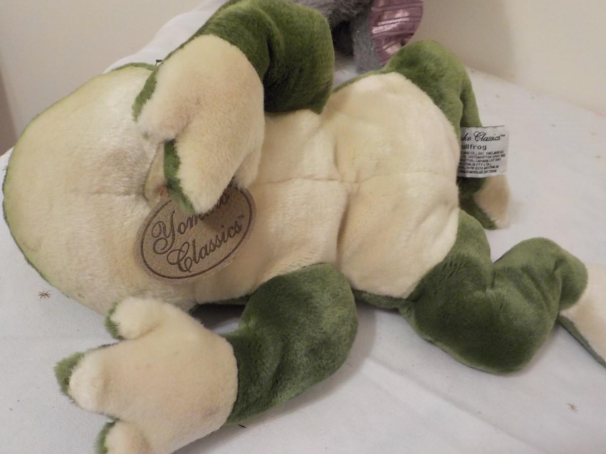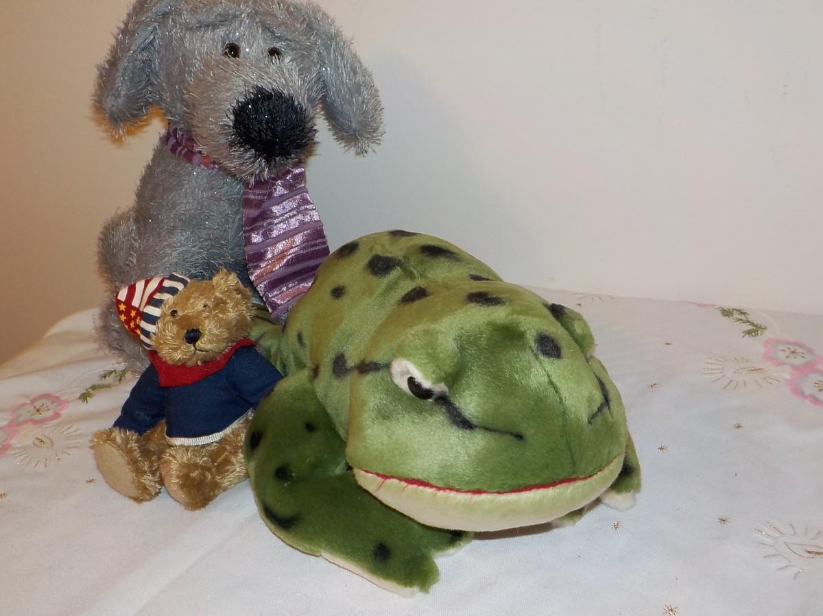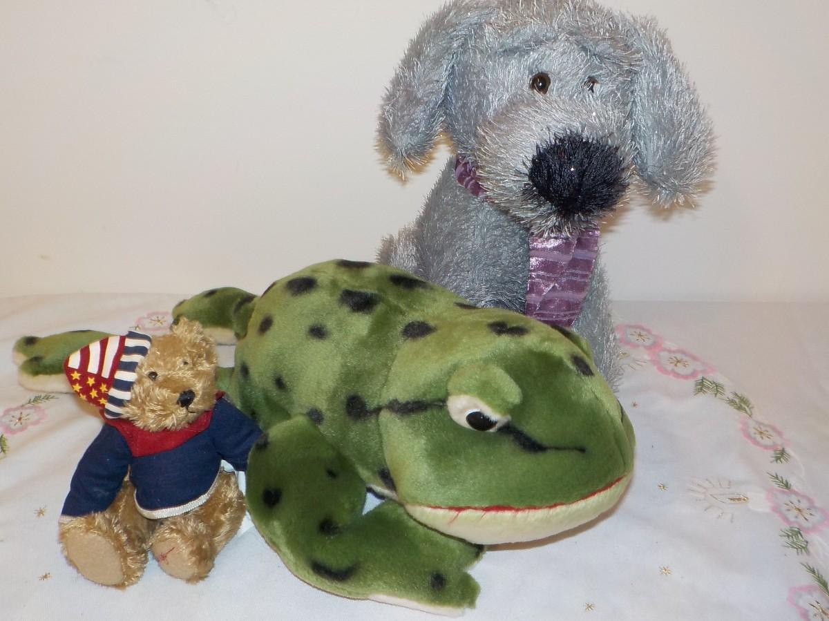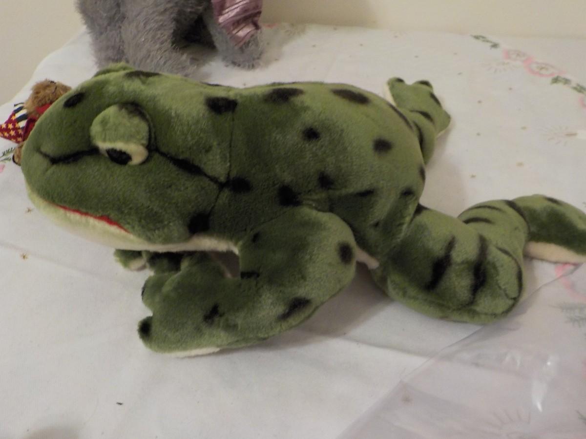 Mr. Frog is about 23in. long Dan Dee puppy is 21 in. and special design is american bear bt and signed Teresa Kogut.