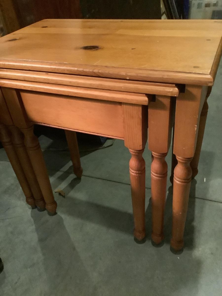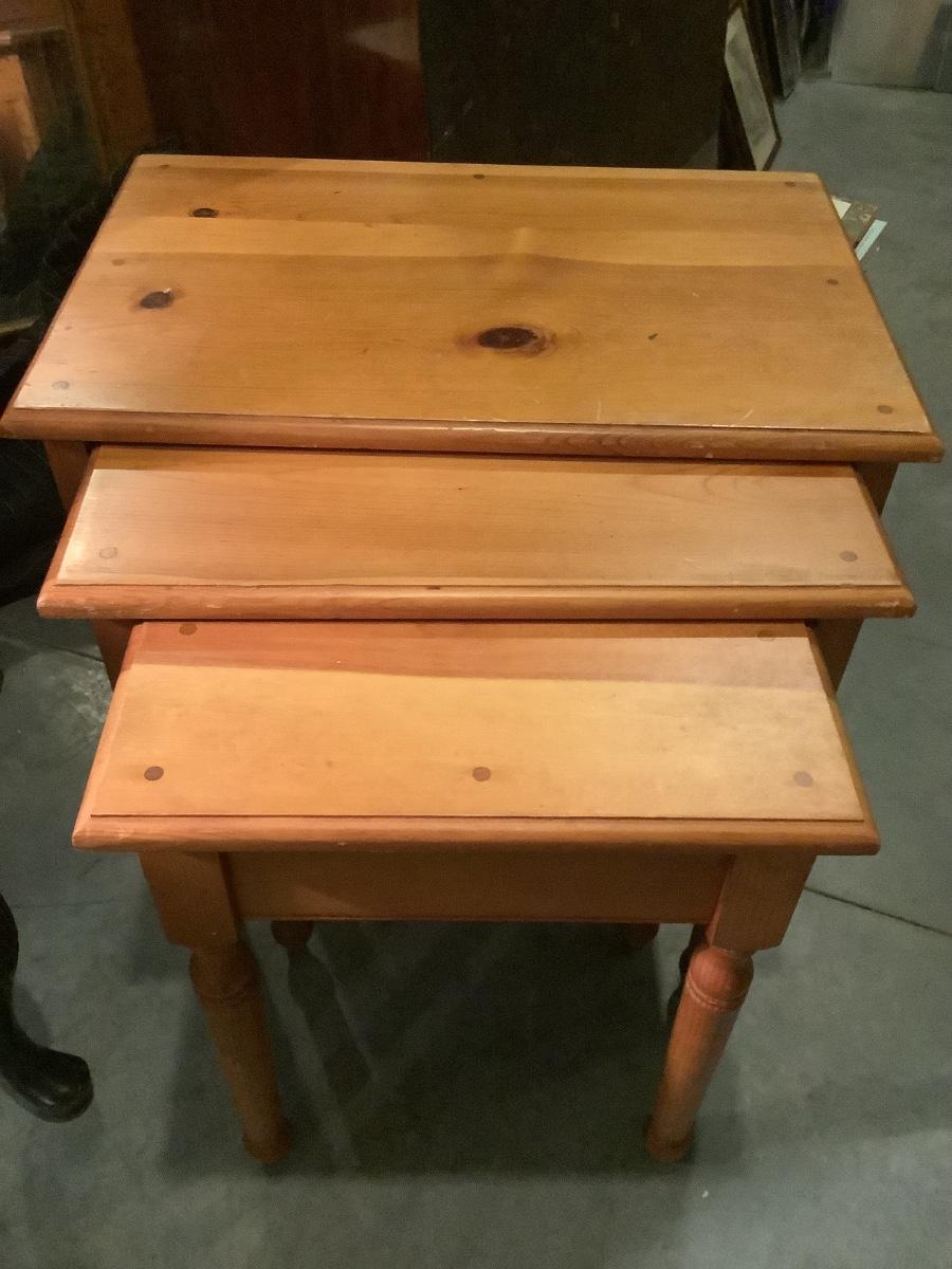 3-Knotted pine nesting tables 22”H 24” x 16”