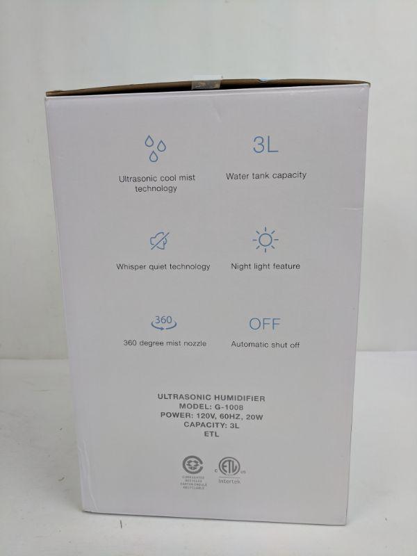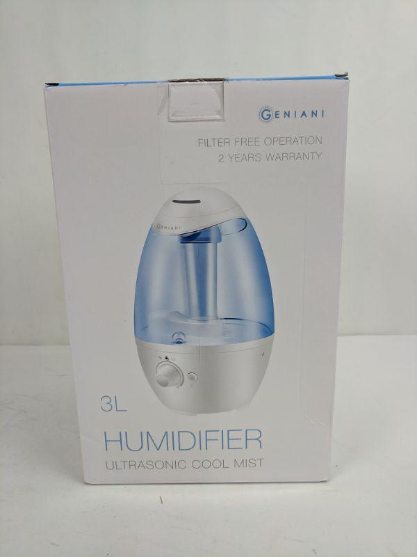 3L Humidifier, Ultrasonic Cool Mist, Filter Free Operation, Geniani - New