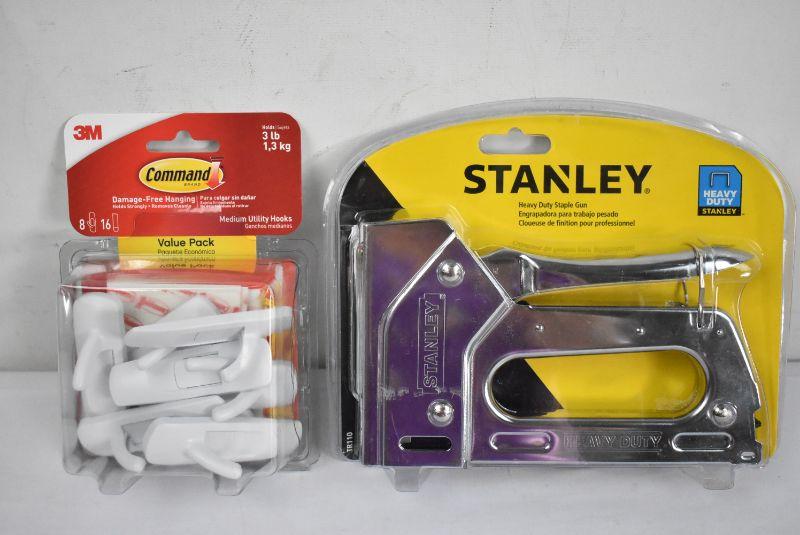 3M Command Hooks (Package of 8) and Stanley Heavy Duty Staple Gun - New