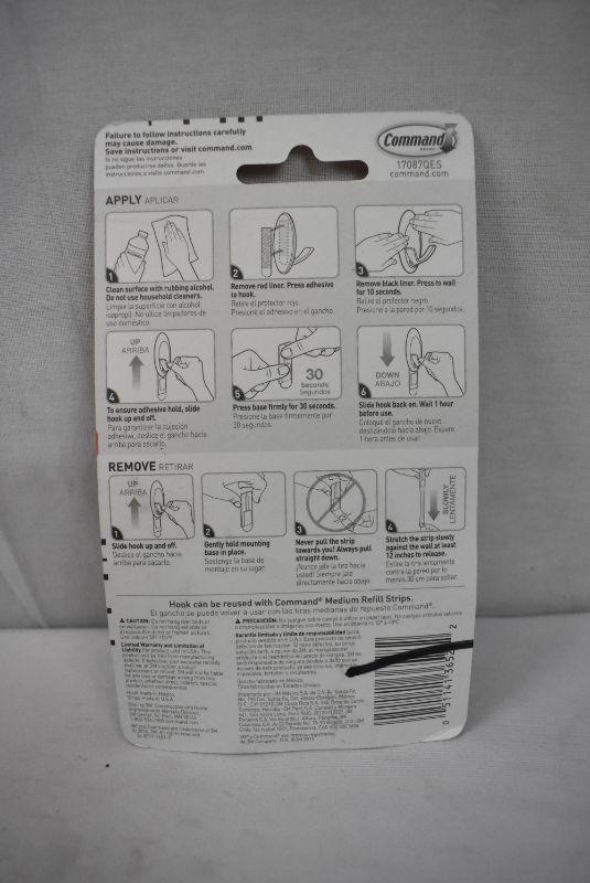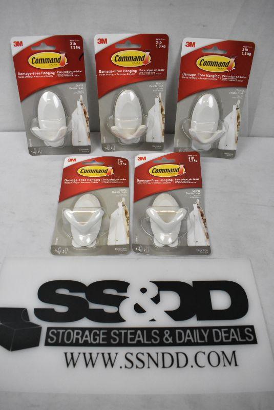 3M Command Hooks, White Double Hooks, Qty 5 - New