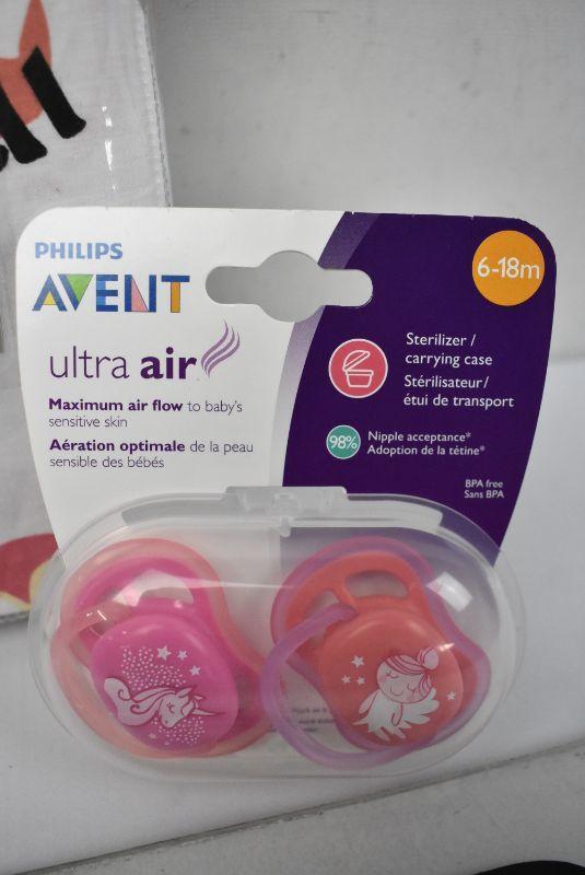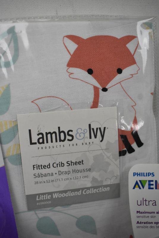 Philips Avent Ultra Air Pacifier, 6-18 months, 2 pack, Blind Cord Wind Ups 2 pk, Lambs & Ivy Little Woodland Forest Animals Fitted Crib Sheet - New