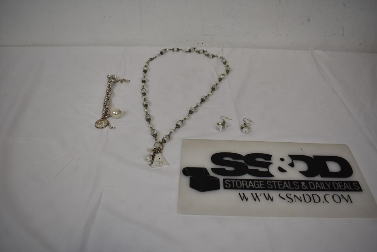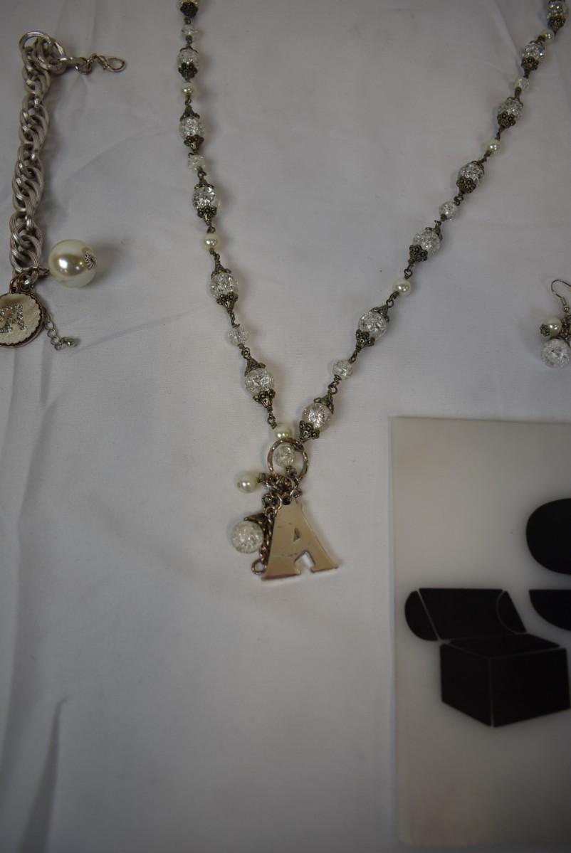 3pc Costume Jewelry With the Letter A: Necklace (Corresponding Earrings), Bracelet