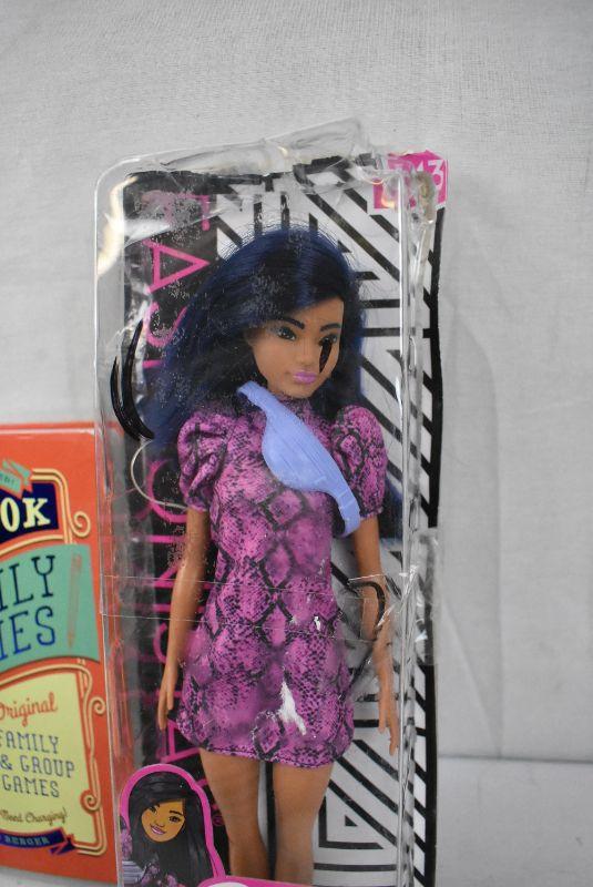 3pc Family: Games Book (cover damage), Avengers Chitauri Figure (open), & Barbie Fashionista (open, missing shoes)