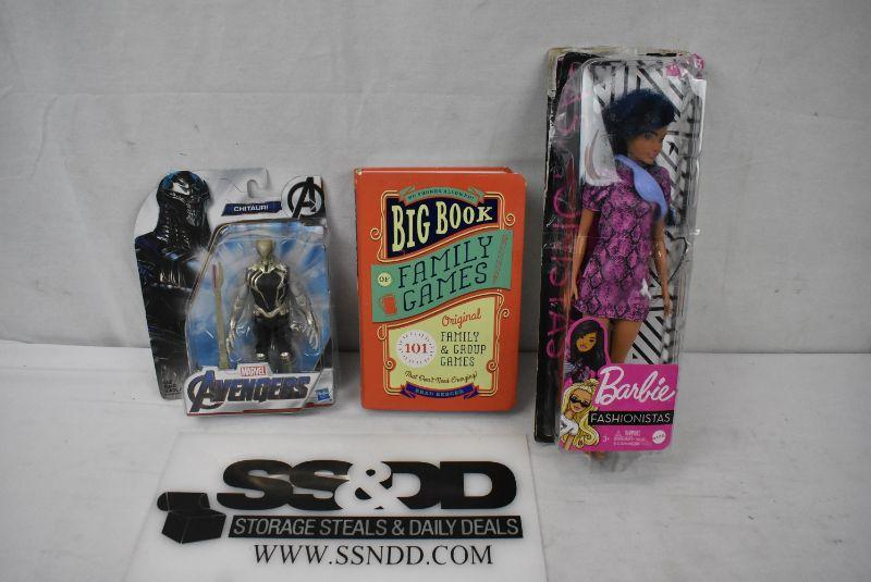 3pc Family: Games Book, Avengers Chitauri Figure, & Barbie Fashionista