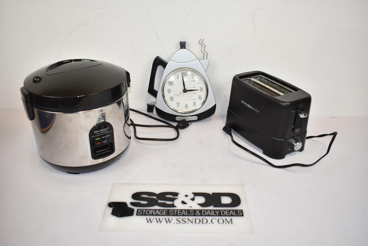 3pc Kitchen: Clock, Toaster, Rice Cooker - Used