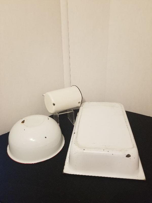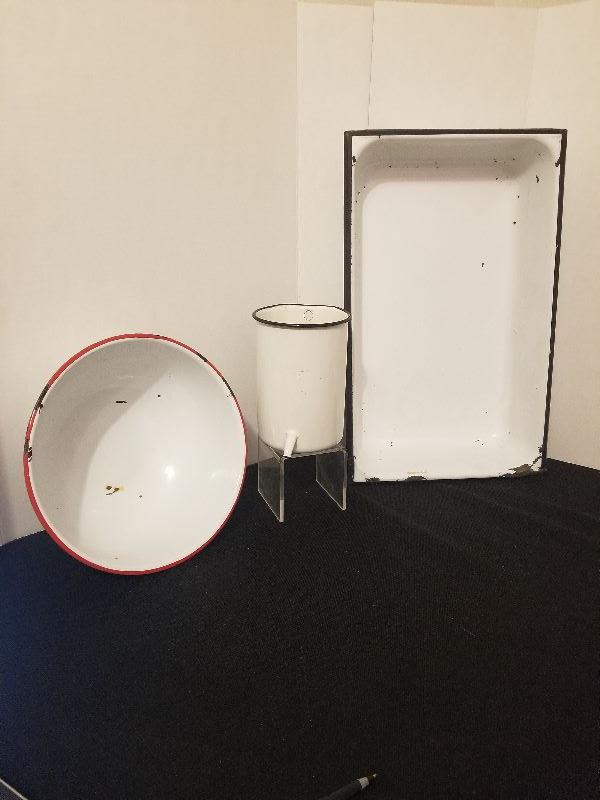 3pc Lot Vintage Enameled Bowl Pan Water Pitcher #6-A