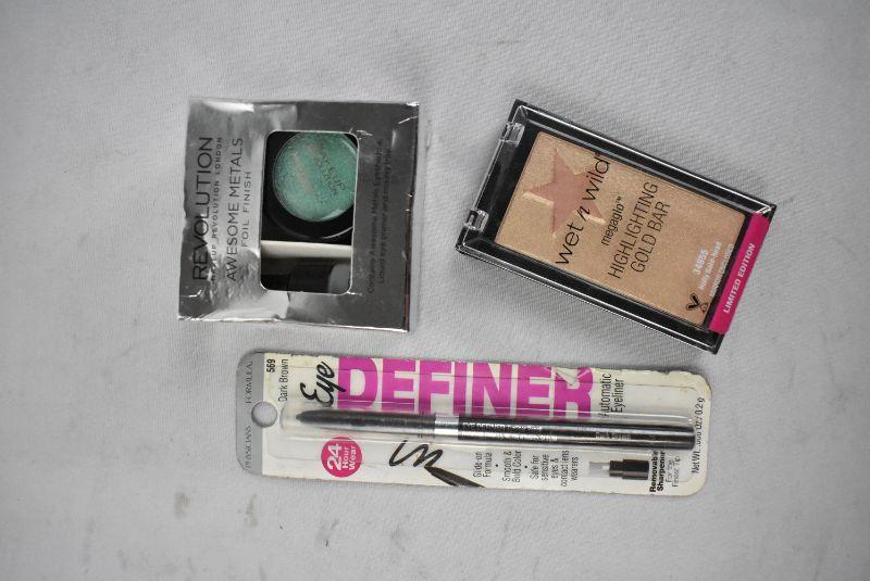 3pc Makeup: Wet n Wild Highlighting Gold Bar Eyeshadow Dark Brown Eyeliner - New