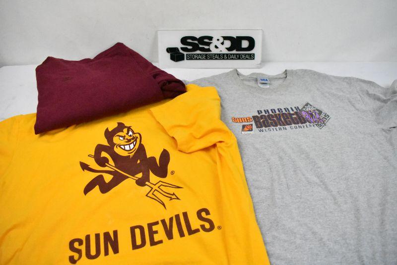 3pc Men's XL: Maroon Starter Sweatshirt, Sun Devils Yellow T-Shirt, Phoenix Suns Gray T-Shirt