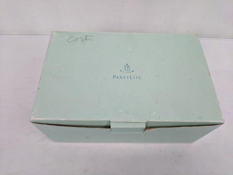 3pc Porcelain Easter Decor by Partylite, includes box & candle. "Baby Bertie & Bea Votive Holder"