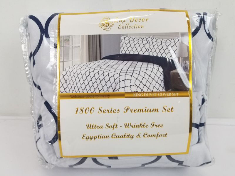 3pc Premium King Duvet Cover Set - One Duvet Cover, 2 Pillow Shams - White/Blue