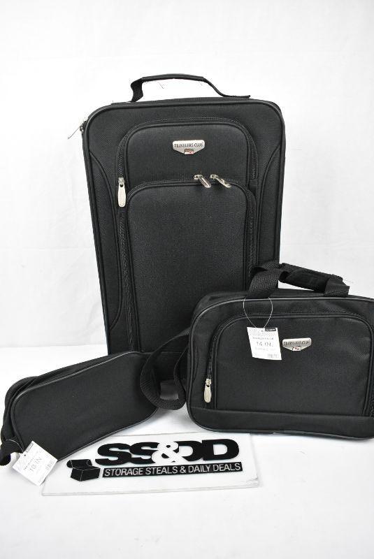 3 pc Travelers Club Luggage Set, Black: Carry-On w/ Wheels, 14" Boarding Tote, & 10" Utility Kit - New
