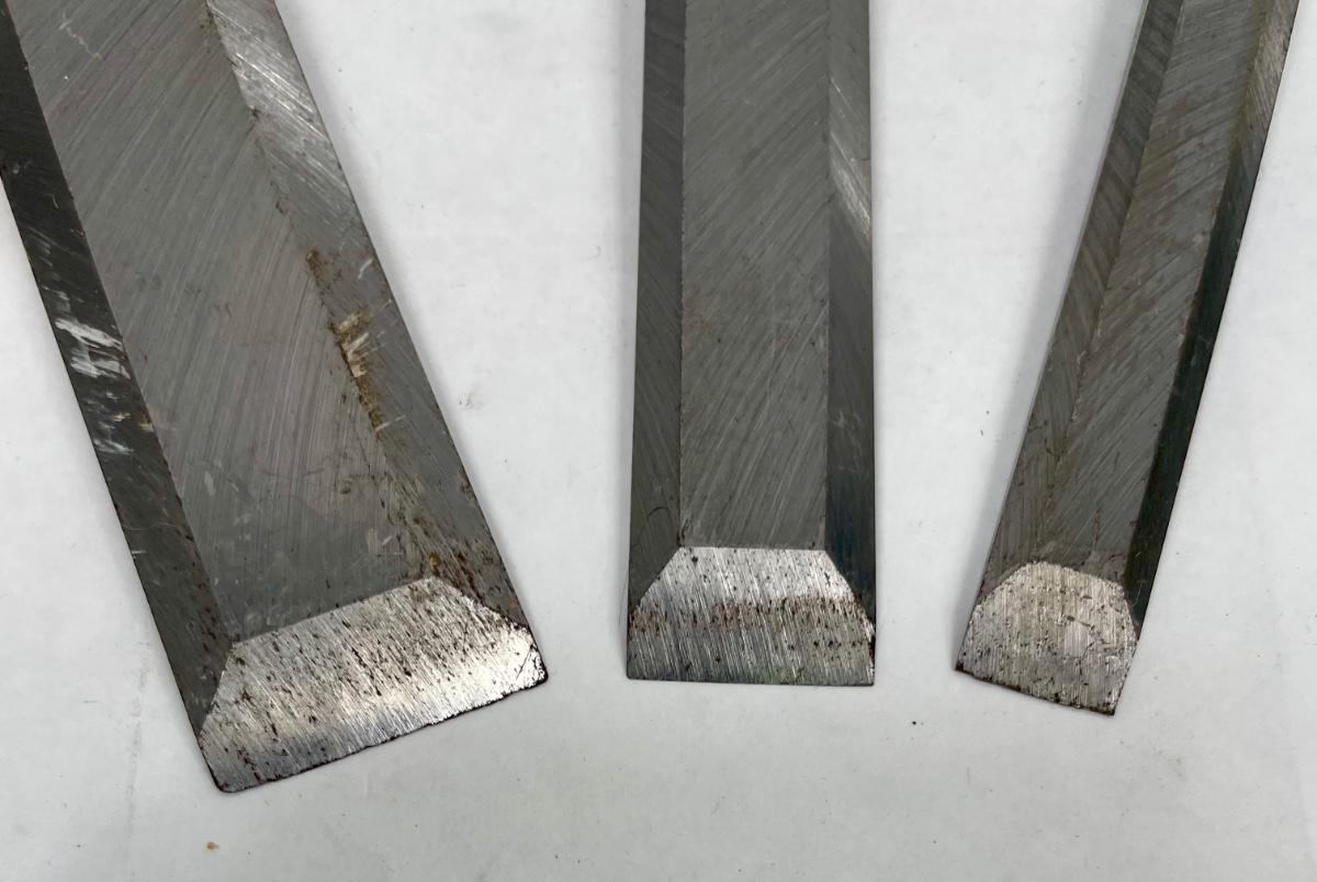 Blade sizes are 1/2", 3/4" and 1". Good condition.