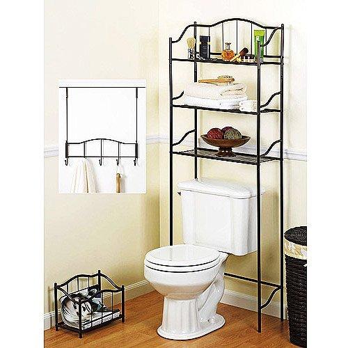 3-Piece Complete Bath Storage Set: Missing Rack with Hooks. Dark Brown.
