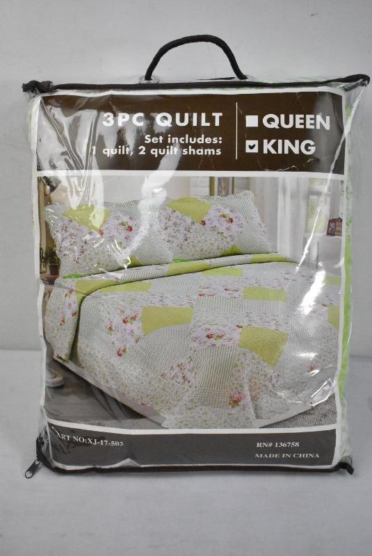 3-Piece Cottage Patchwork Microfiber Bedspread Quilt Set (King) - New