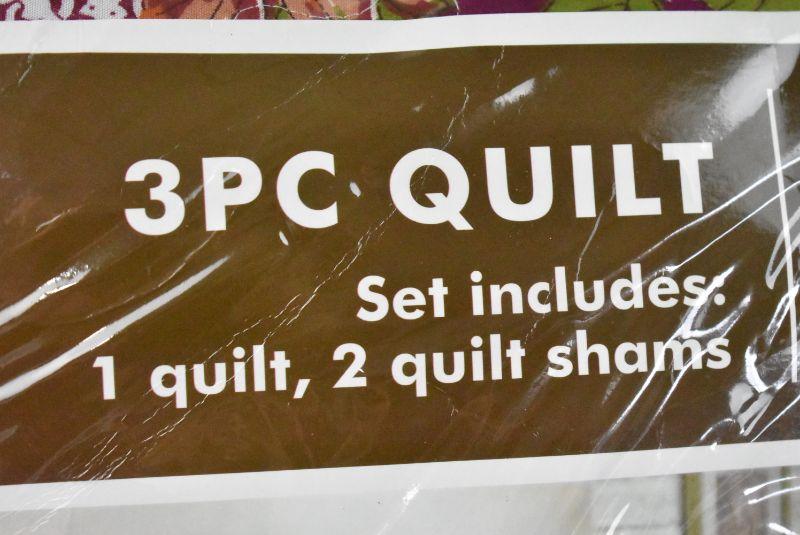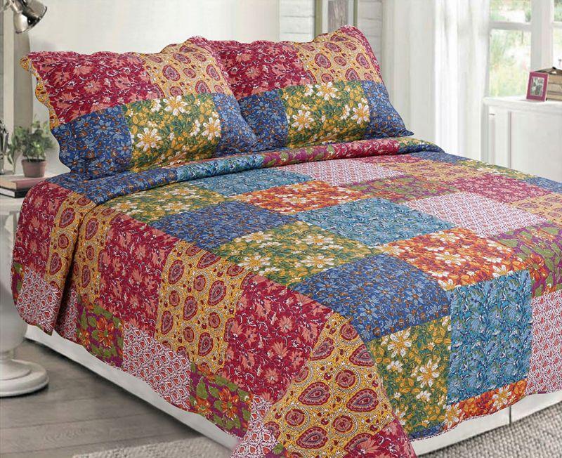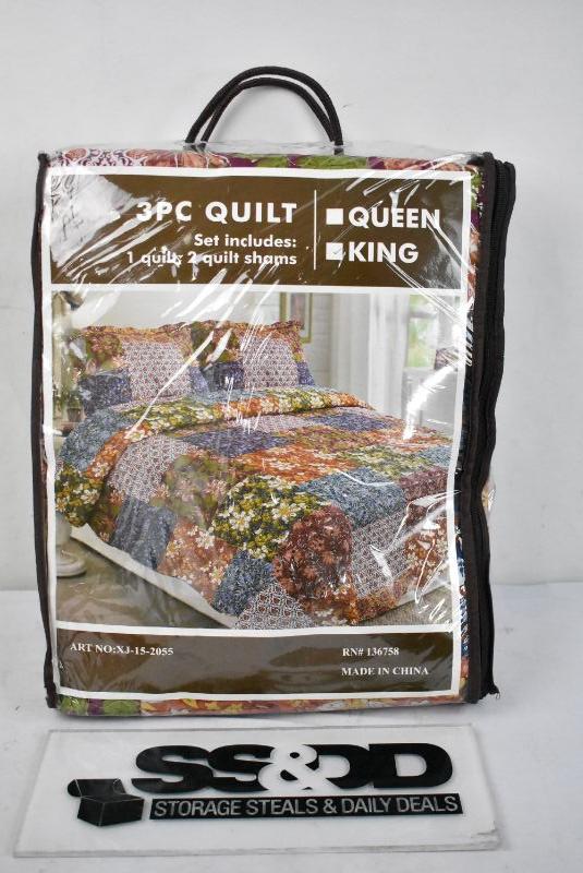 3-Piece Cottage Patchwork Microfiber Bedspread Quilt Set (King) - New