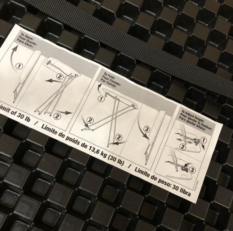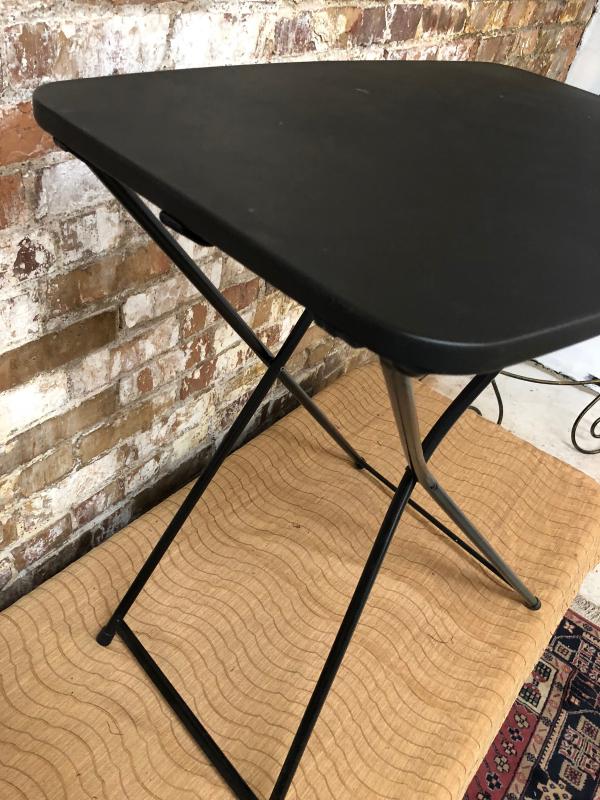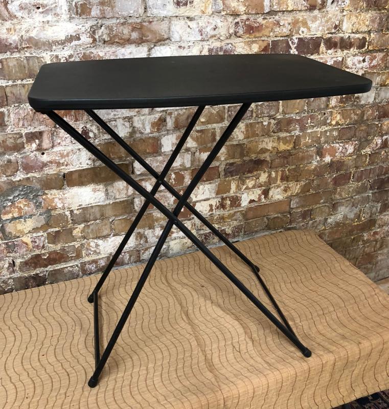 Metal and hi-impact plastic construction on this 3-position adjustable folding utility table...Like new condition...28" high...26" wide...Black...Contemporary design....