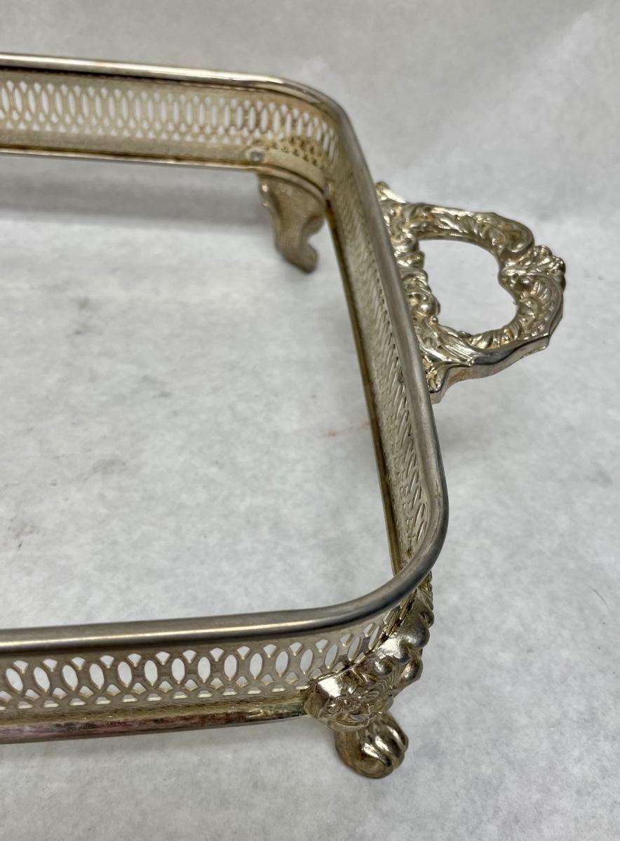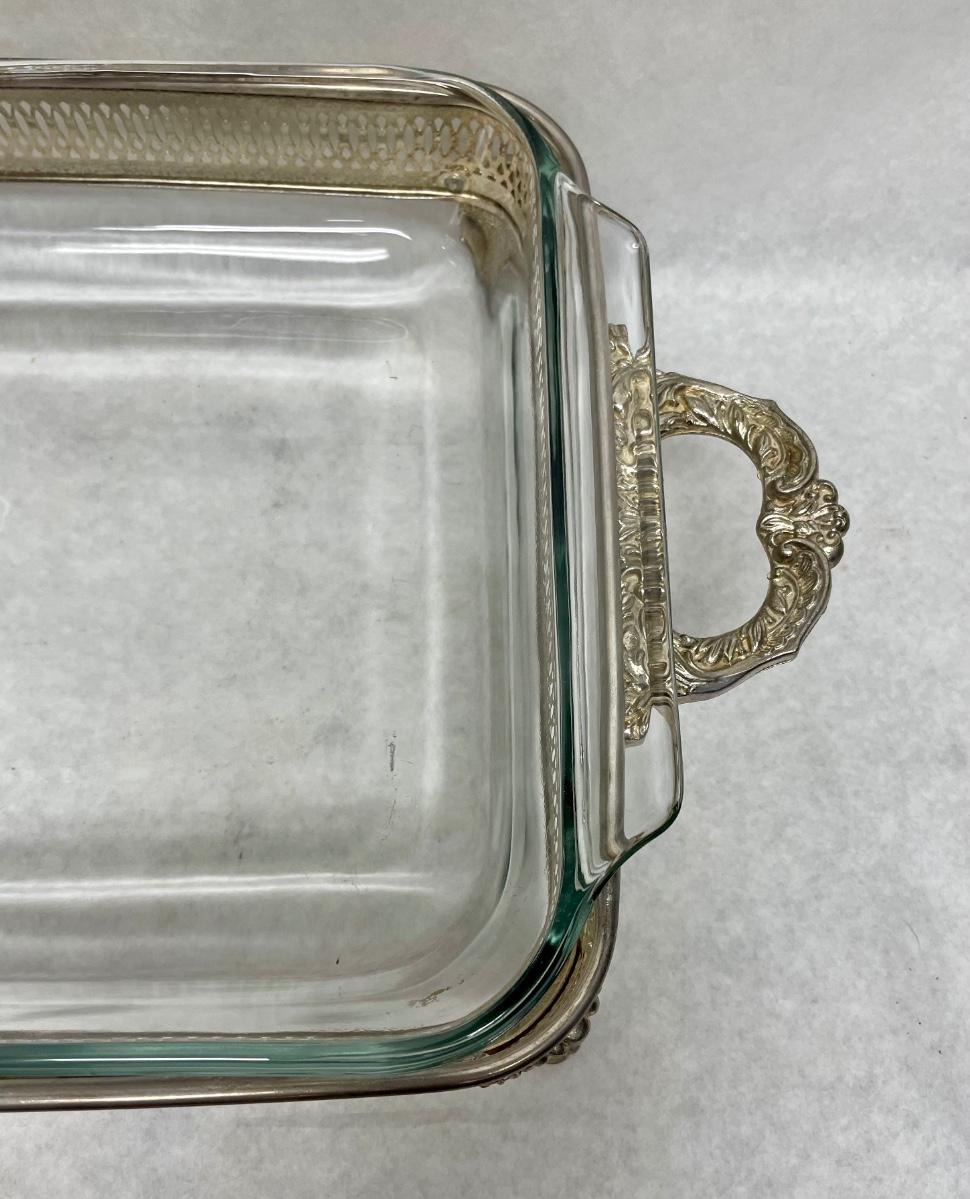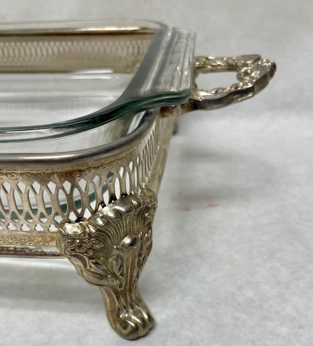 Olde Chelsea Silversmiths 3-quart serving dish with removable glass liner pan. Good condition, approx. 19" x 10".
