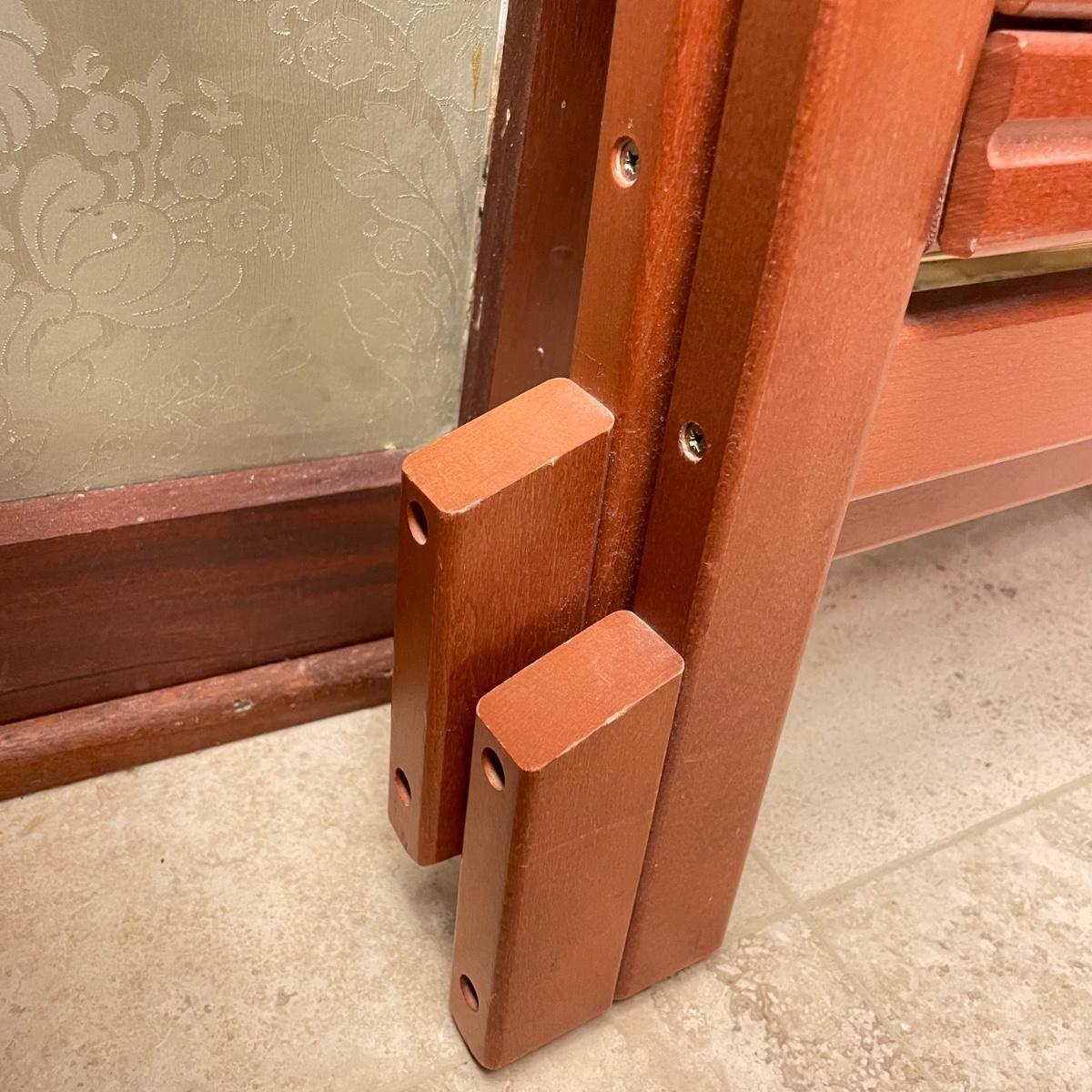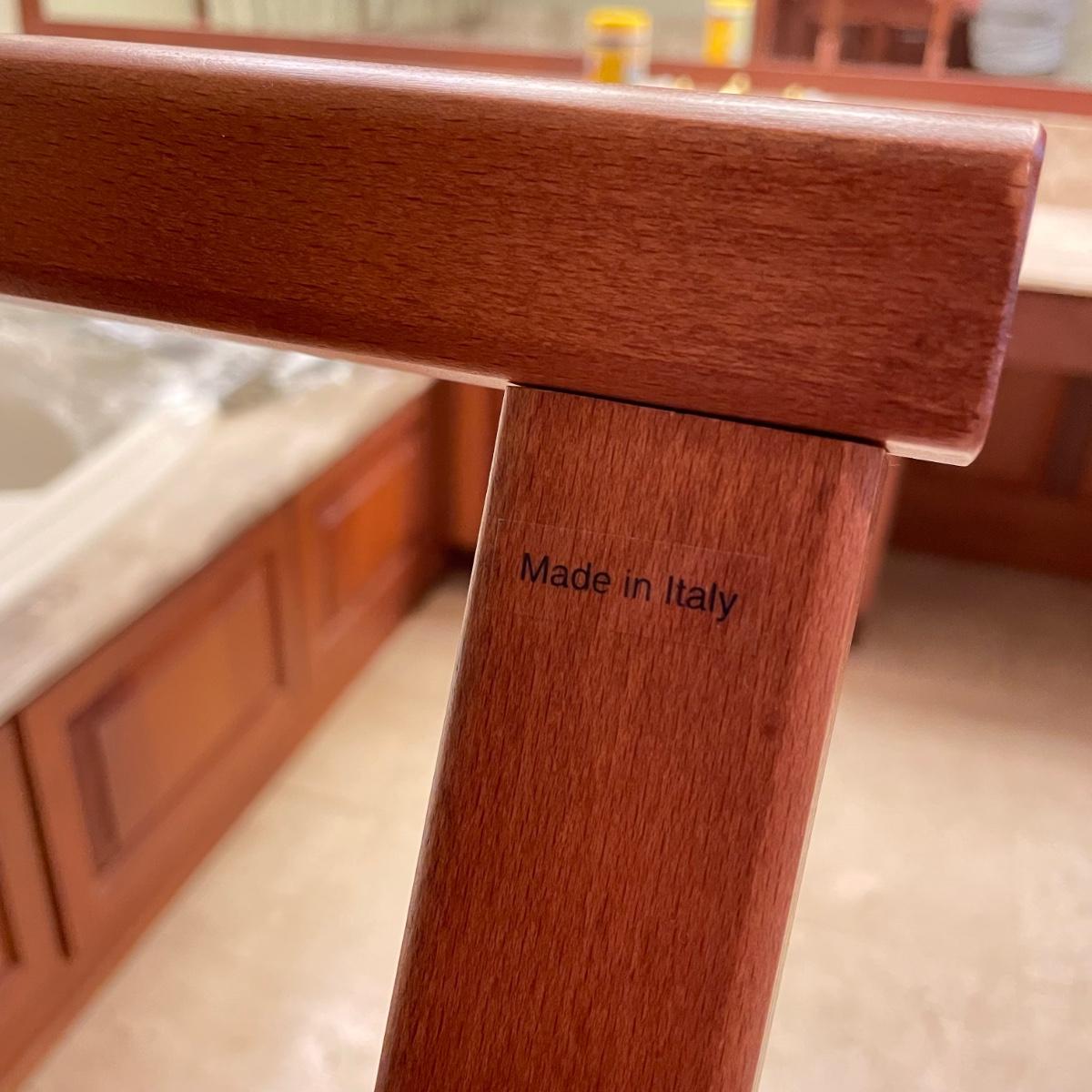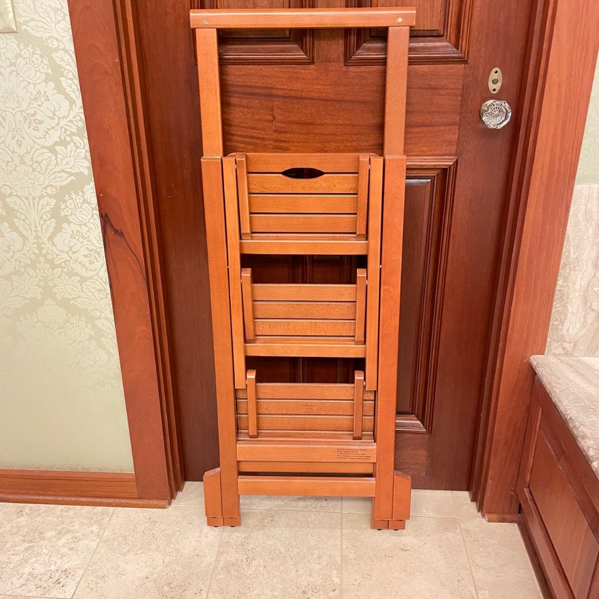 Nice wood slatted step ladder, made in Italy. Piece appears to be sturdy. The highest step sits at 28”H. When collapsed, stool measures 20” x 2.5” x 48”H. Local pick up only.