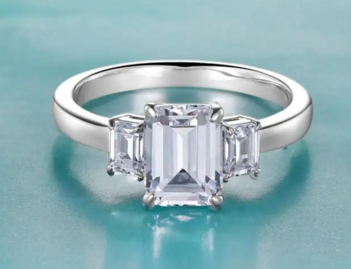 3-Stones Total 5carats Moissanite Anniversary Ring for Women, D Color Emerald Cut, 925 Sterling Silver Solitaire Total 5 cts Size 7