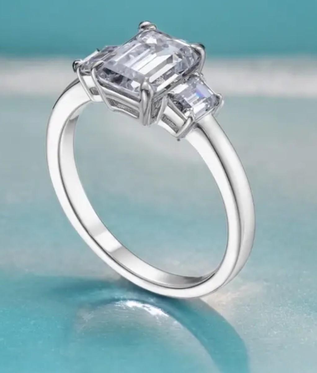 3-Stones Total 5carats Moissanite Anniversary Ring for Women, D Color Emerald Cut, 925 Sterling Silver Solitaire Total 5 cts Size 7