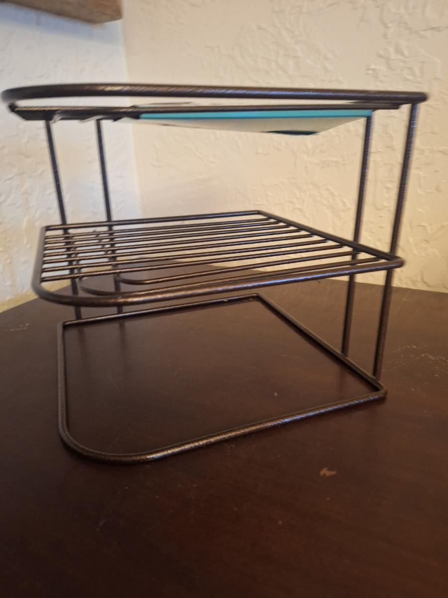 3-tier metal corner plate rack or cupboard organizer.
