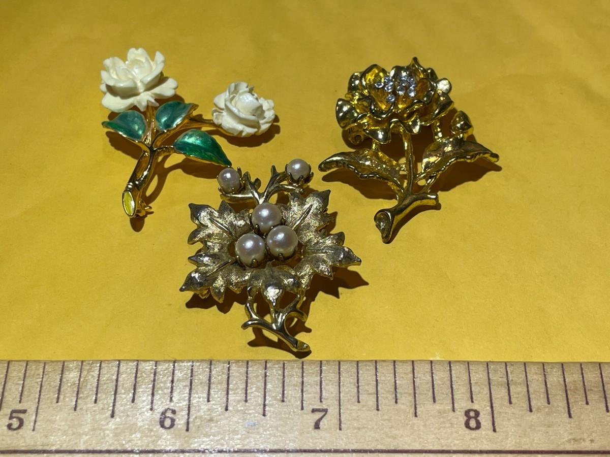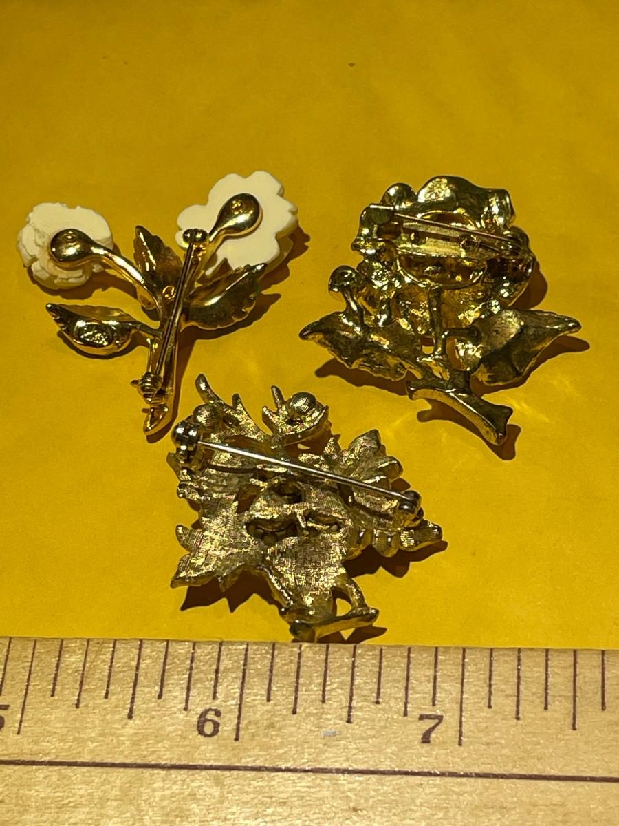 3-Vintage Fashion Pin/Brooch Pieces in Good Preowned Condition as Pictured. Receive all that is Pictured. $5 Domestic Shipping.