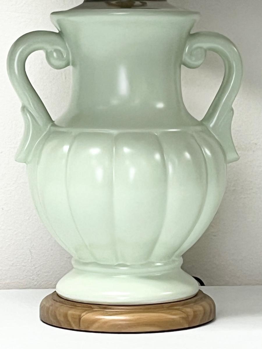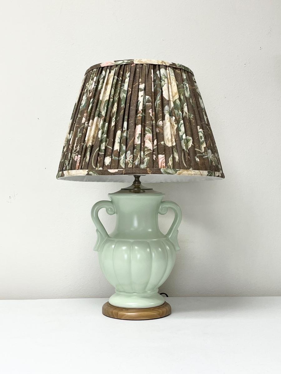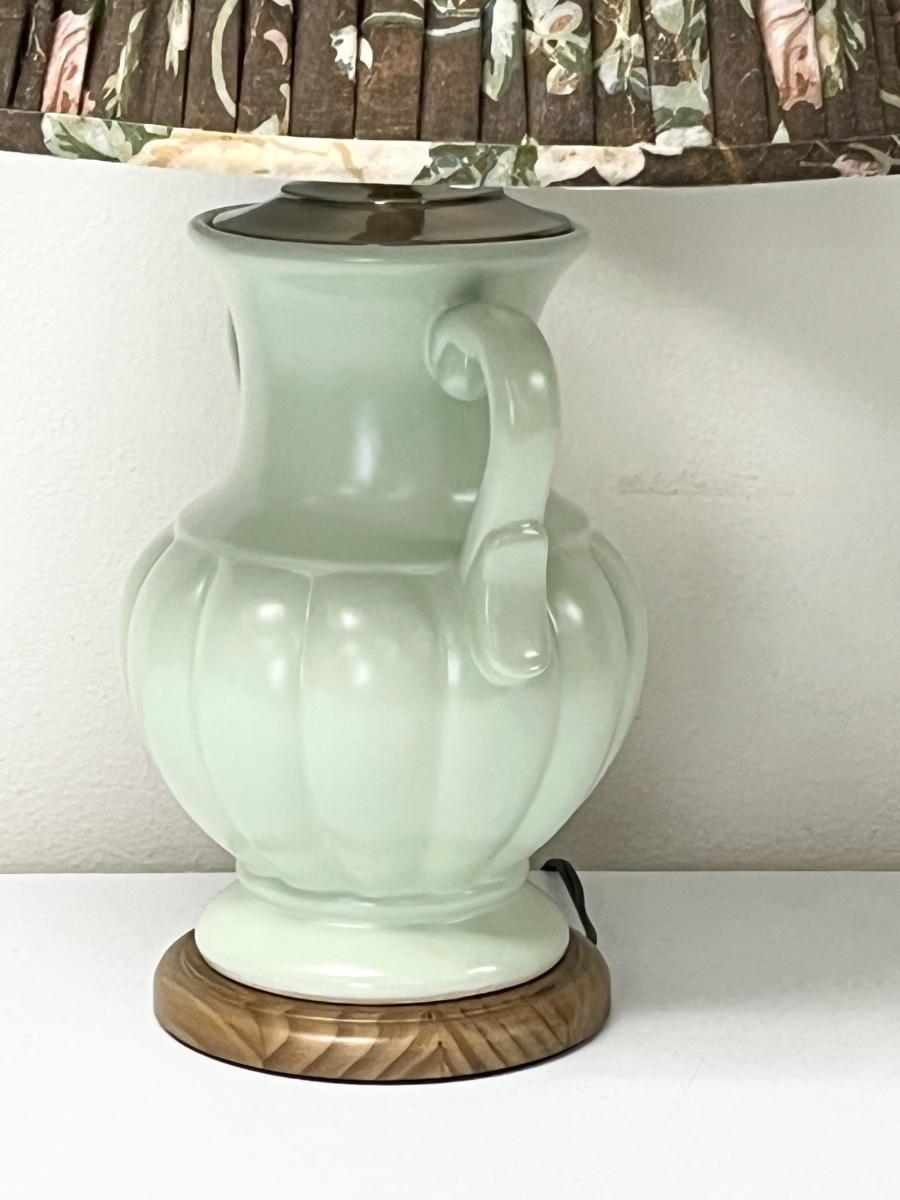 3-Way Ceramic Mint Green Table Lamp ~ Rose Pleated Shade