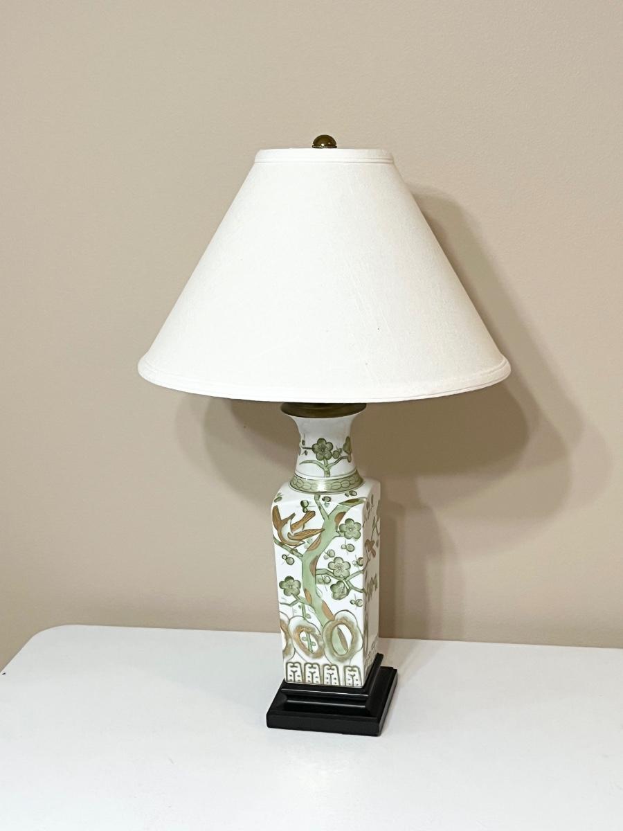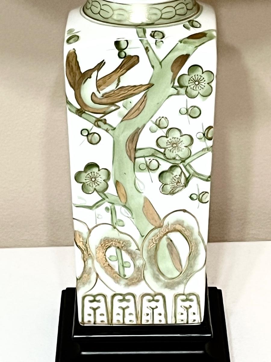 3-Way Ceramic ~ Bird & Floral Table Lamp ~ Wood Base