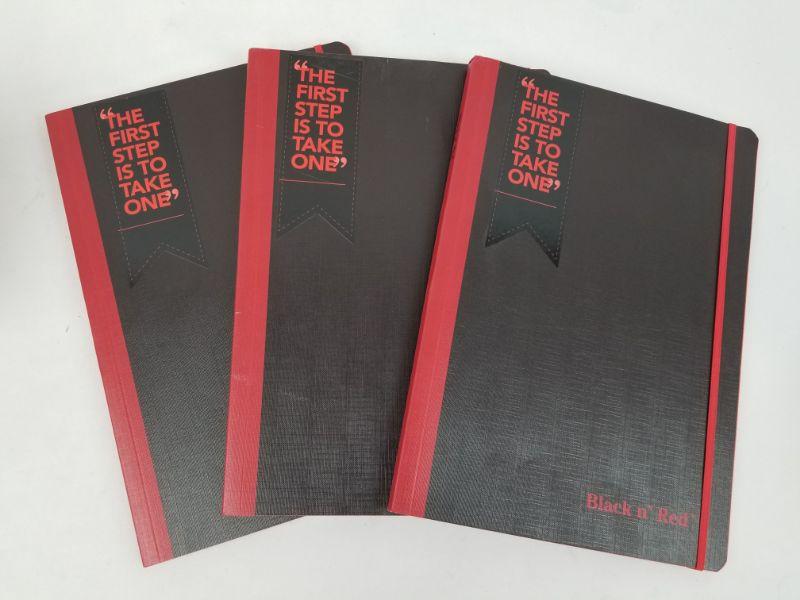 3x Black n' Red Casebound Flexible Cover Notebook, Large, Black, 72 Ruled Sheets
