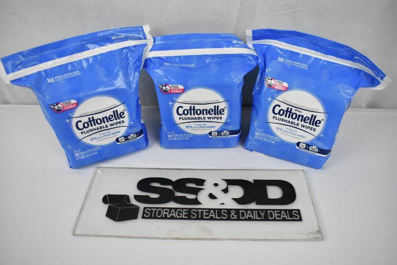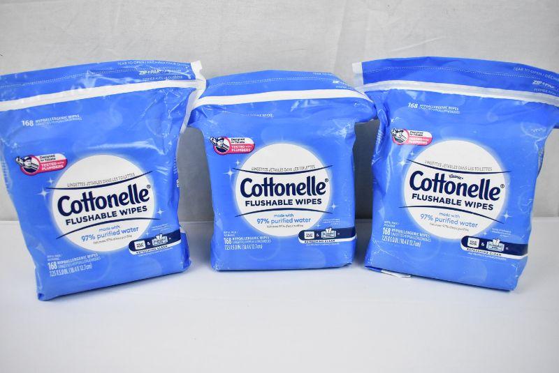 3 packages Cottonelle FreshCare Flushable Wipes, resealable pack, 168 wipes in each package - New