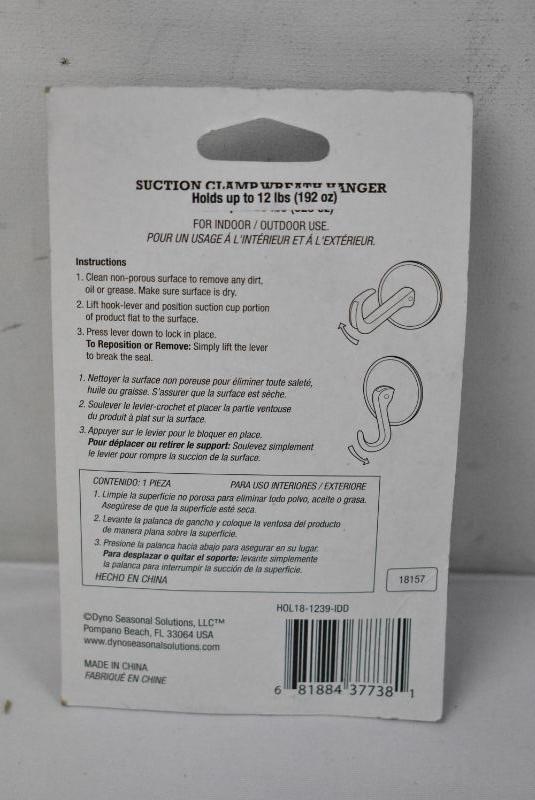 3x Suction Clamp Wreath Hanger, Hold up to 12 Pounds - New
