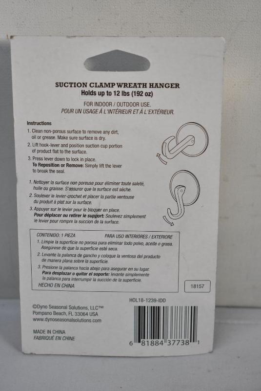 3x Suction Clamp Wreath Hangers - New