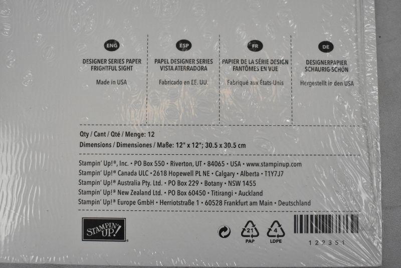 3 packages Thick Patterned Paper Stampin' Up "Frightful Sight" Opened one package for photos. 12 double sided sheets in each package - New