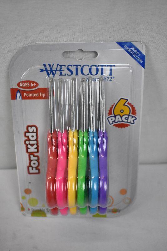 3x Westcott 5" Pointed Kids Scissors 6 Count Classpack, Assorted Colors - New